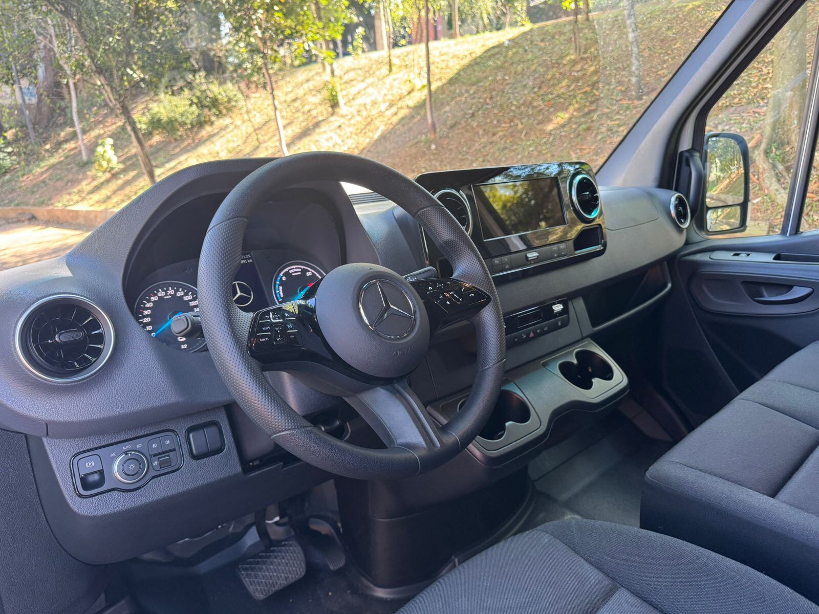 Fora o preço, a dinâmica da eSprinter é mais prazerosa para o motorista, que irá trabalhar com o furgão, visto que o motor elétrico síncrono de ímã permanente entrega até 204 cv e 400 Nm, ou 40,78 kgfm de torque. Com isso, o torque, que é o ponto valioso de um utilitário, é entregue de maneira linear e constante, sempre dando aquele fôlego a mais para vencer subidas e também fazer ultrapassagens. Inclusive, a tração é traseira e a suspensão é macia, mesmo com estrutura voltada ao transporte de carga.