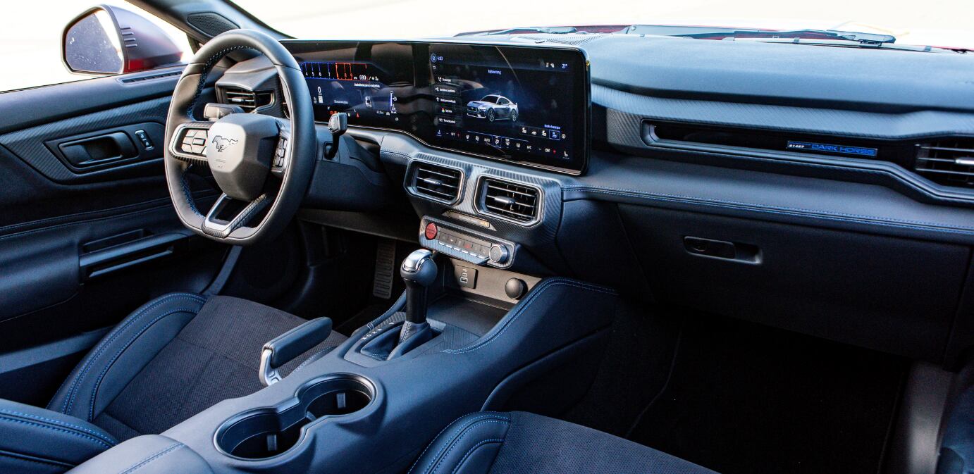 O Ford Mustang Dark Horse oferece cinco modos de condução incluindo o modo personalizável com rotação e velocidade, assistência da direção, controles de tração e estabilidade, rigidez de suspensão, sensibilidade do acelerador entre outros.