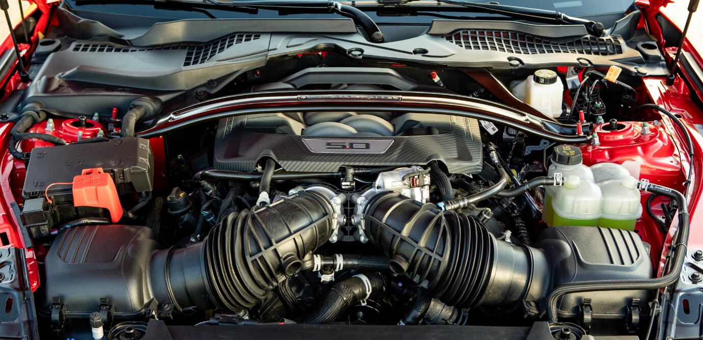 O motor é o tradicional V8 Coyote aspirdo com 507cv e 57,8kgfm de torque combinado com transmissão automático de dez marchas com 80% de torque já em 2500rpm. A biela e virabrequim são herdados do GT500. Chega a 250km/h e o 0-100km/h é feito em 3,7s (no GT a aceleração é feita em 4,3s).