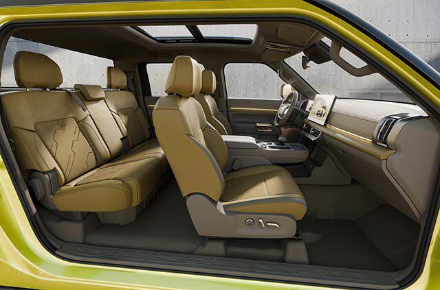 O interior da Frontier híbrida segue o padrão de um SUV moderno, com acabamento refinado e equipamentos de conforto pouco usuais em caminhonetes médias. O painel central abriga uma tela de 14,6 polegadas, e o sistema de som é assinado pela francesa Focal. O teto solar panorâmico, os bancos traseiros com encosto reclinável em três posições e a abertura das portas traseiras em 90 graus destacam o foco no uso familiar, aproximando o modelo do conceito de veículo utilitário de luxo.