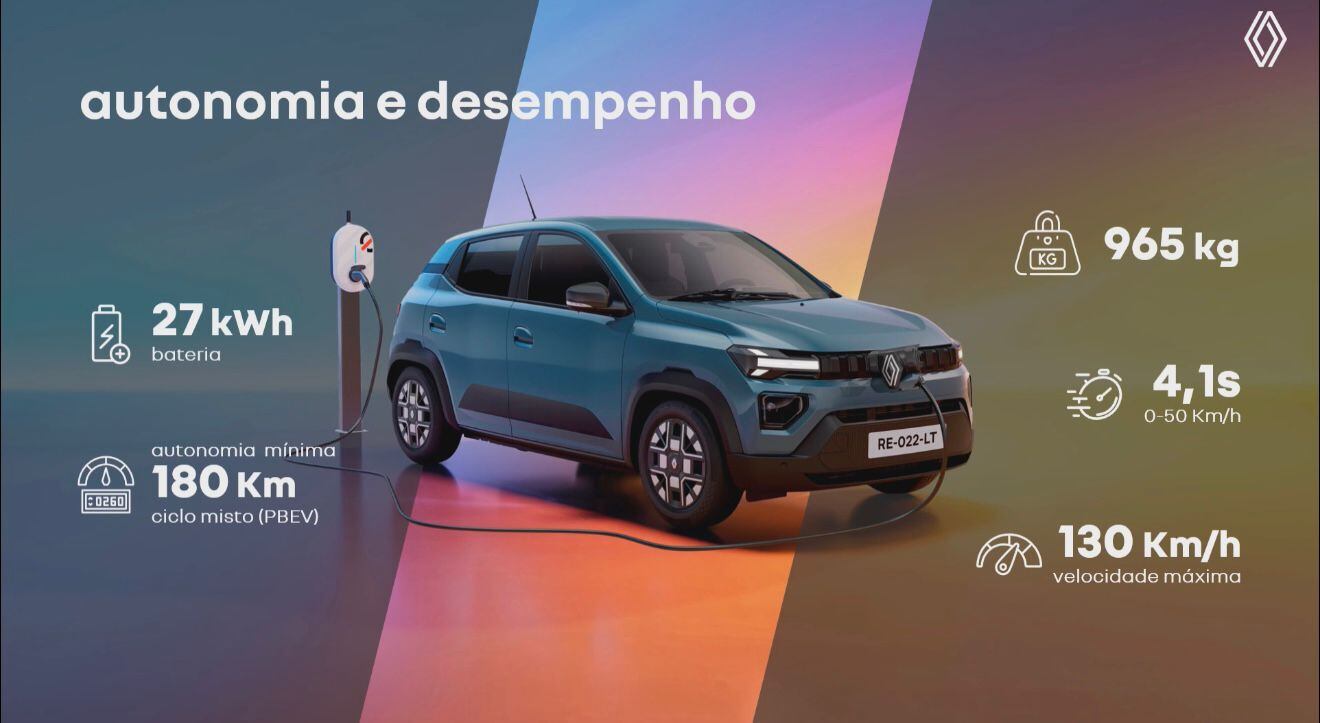 A motorização não muda e segue com 65cv com bateria de 27kwh homologada para 180km de autonomia segundo o Inmetro. Na prática, pode superar os 230km de autonomia do ciclo WLTP urbano.