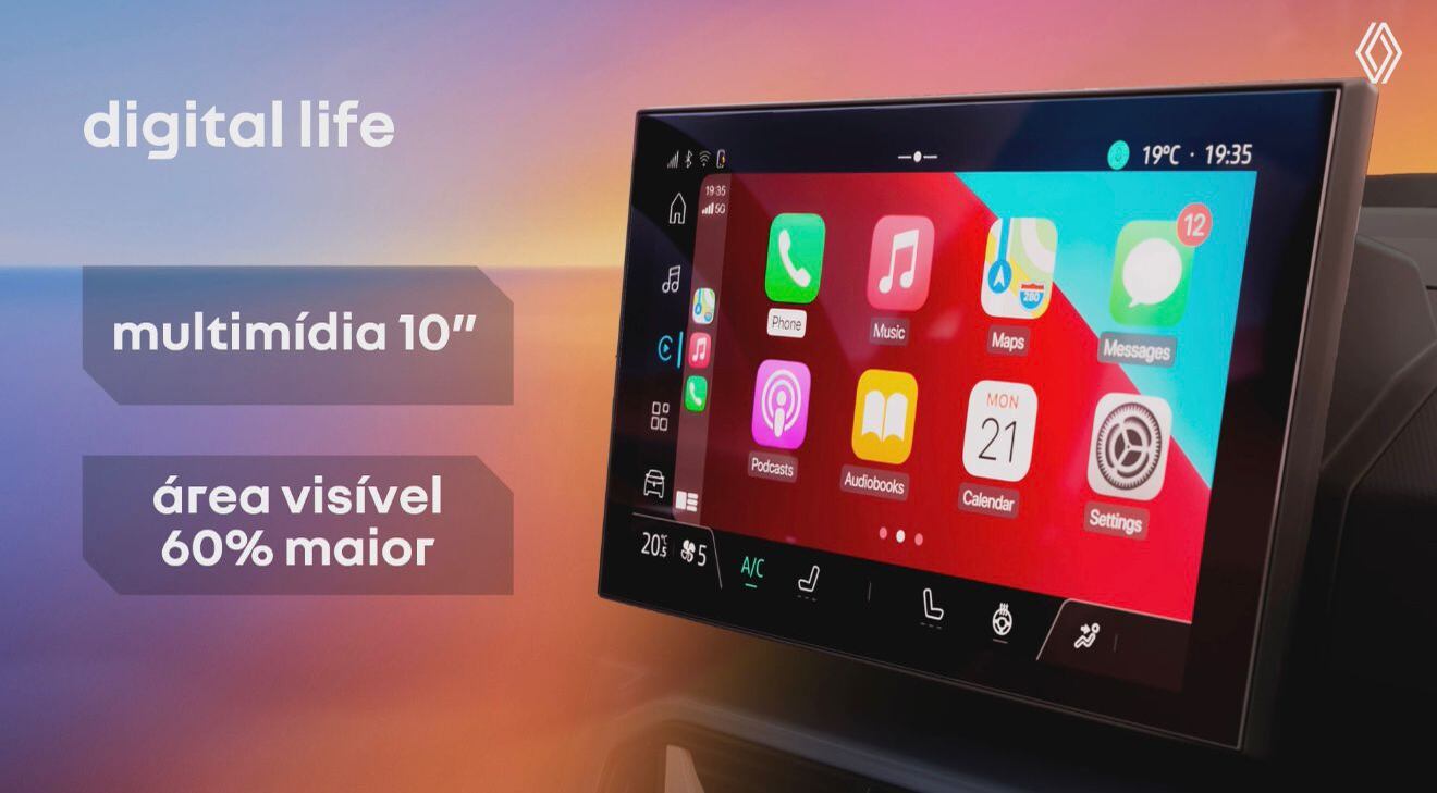 Por dentro, há um novo painel digital de 7 polegadas, multimídia digital ampliada com 10 polegadas “digital life” com Apple CarPlay e Android Auto sem cabos, novo centro de volante e novas saídas de ar, além de novos pontos de carga USB-C.