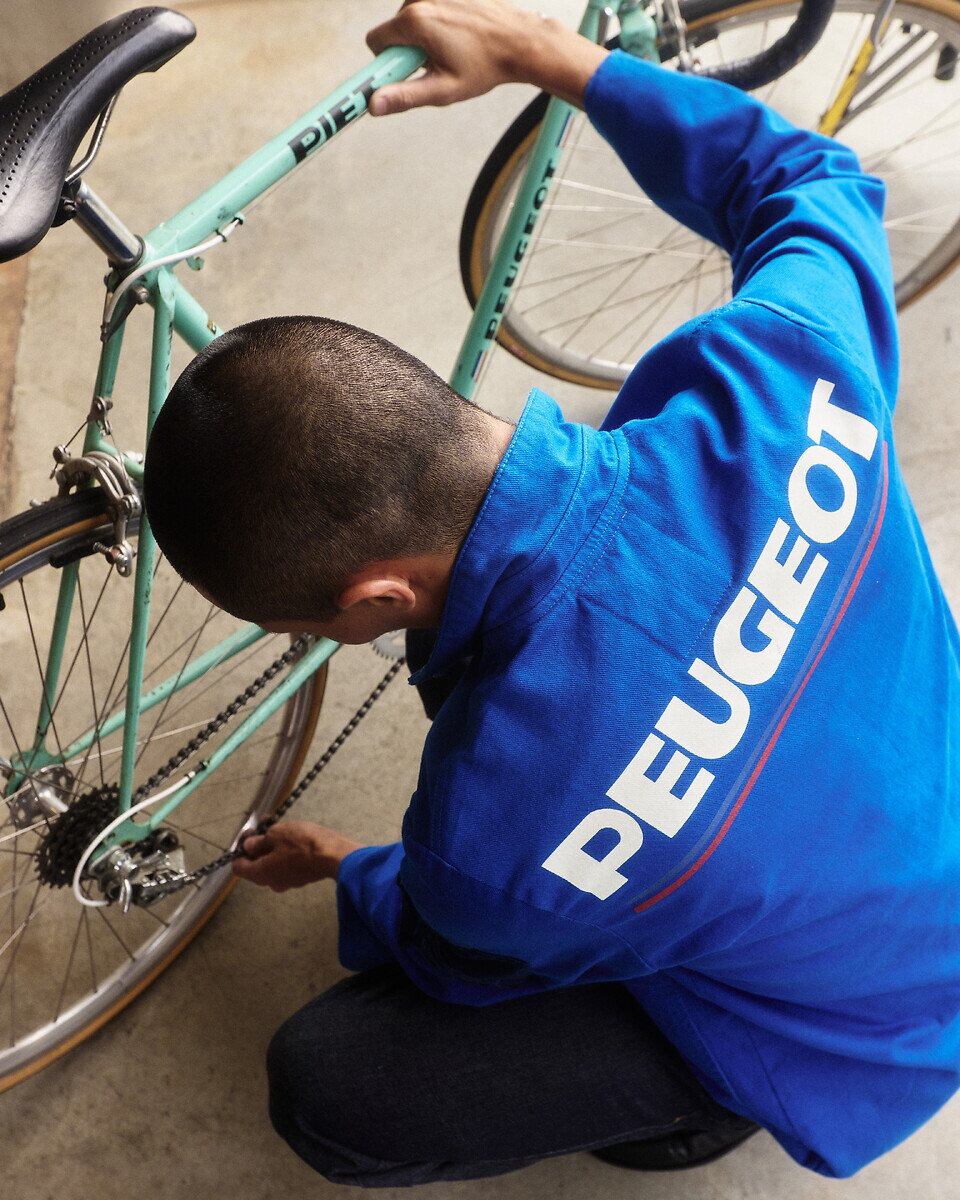 A inspiração da coleção vem do início da história da Peugeot, que produzia itens de aço e metal antes de se tornar fabricante de automóveis. O ciclismo, um dos marcos dessa fase, guiou o conceito da collab. As peças apresentam referências ao design dos veículos da marca, com costuras e cores baseadas em detalhes internos do Peugeot 2008. O portfólio inclui jaquetas, camisetas, jerseys, jeans e acessórios, em tons de azul, preto, cinza, off-white, verde e vermelho.