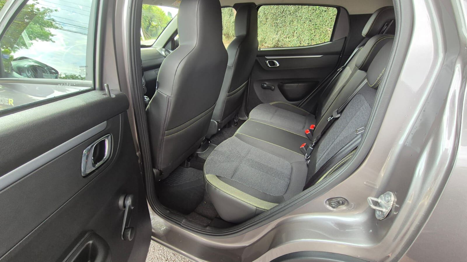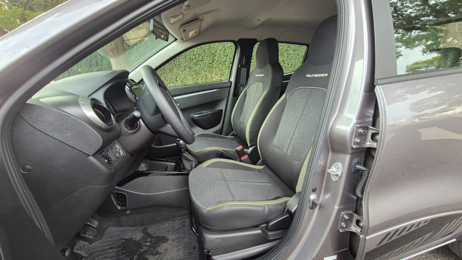 Falando nisso, o Outsider tem um estilo interior bem interessante e bem pensado. O revestimento dos bancos é novo e combina couro, tecido com costura verde limão de bom gosto e apesar da simplicidade do carro como um todo, agrada bastante.