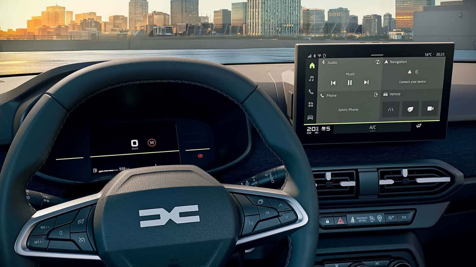 Por dentro há um novo painel mais anguloso, com novas entradas de ar e painel. A multimídia também ganha novo sistema Media Display de 10´´ com Apple CarPlay e Android Auto, além de navegação com informações em tempo real do trânsito chamado de “Media Nav Live”, câmera 360, acendimento automático de farois e carregador sem fio. Mas são itens oferecidos em pacotes pois essencialmente o Logan é um carro básico sem rádio e com suporte de clip para posicionar o celular no painel.