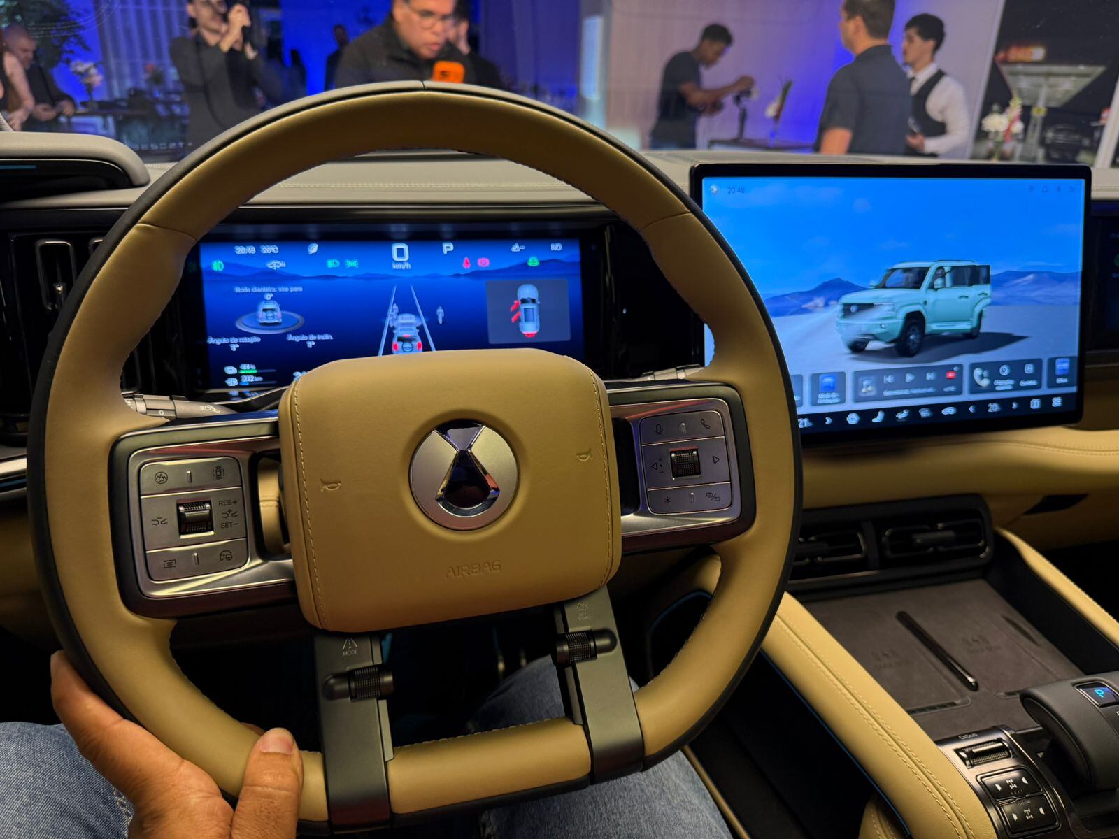 O Denza B5 tem 4.890 mm de comprimento, 1.970 mm de largura e 1.920 mm de altura, com entre-eixos de 2.800 mm. Um dos principais diferenciais técnicos do SUV é a suspensão hidráulica ajustável, que permite elevar a altura livre do solo para até 310 mm, reforçando sua vocação off-road.