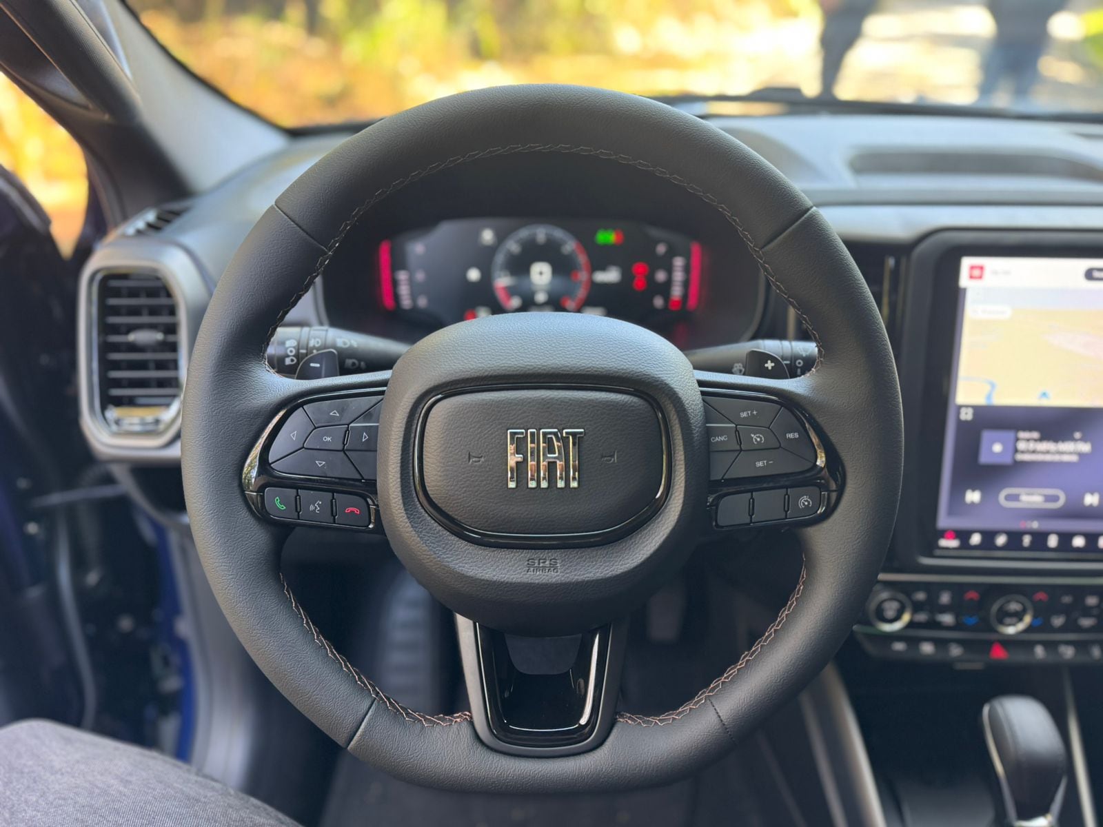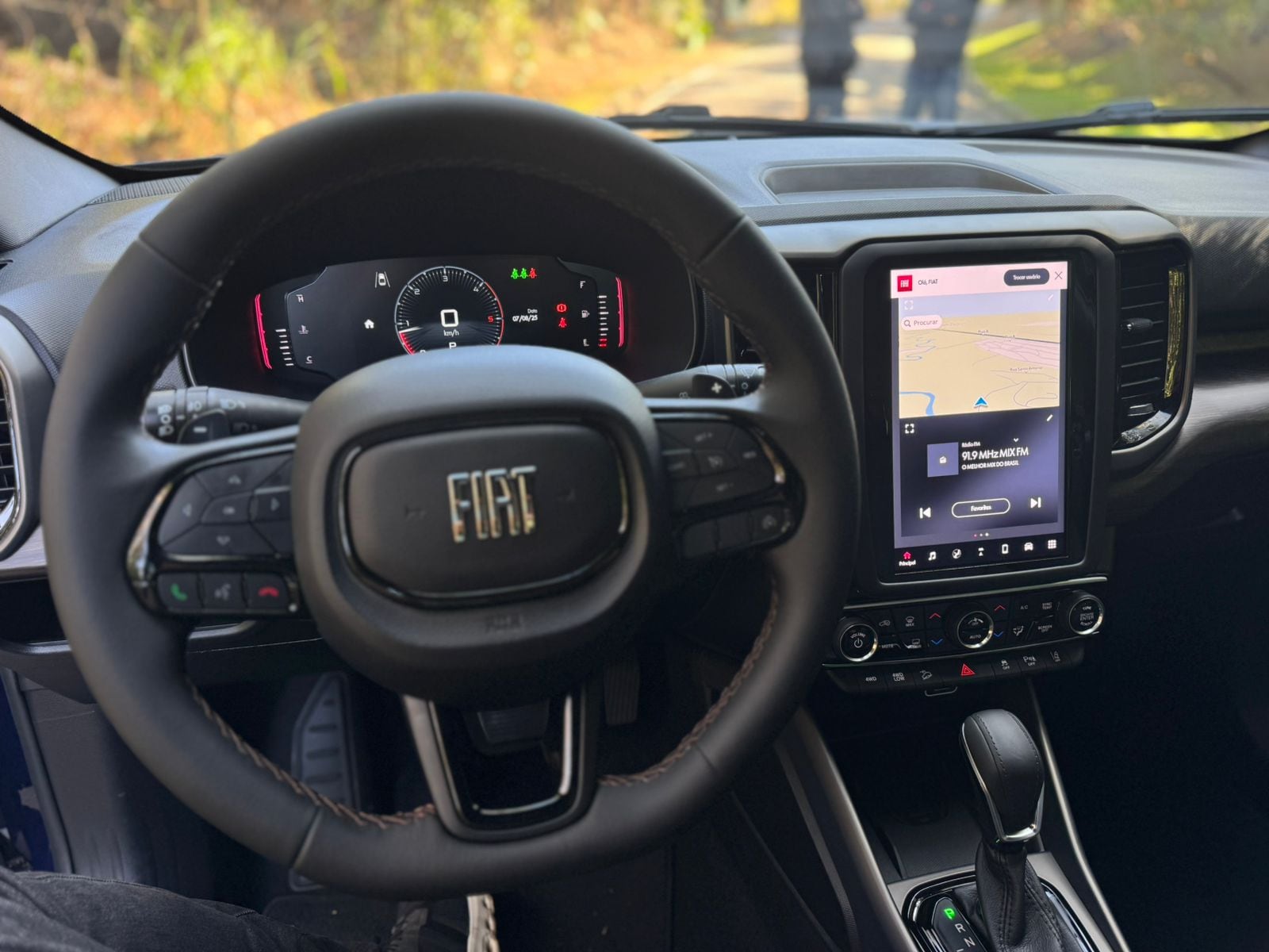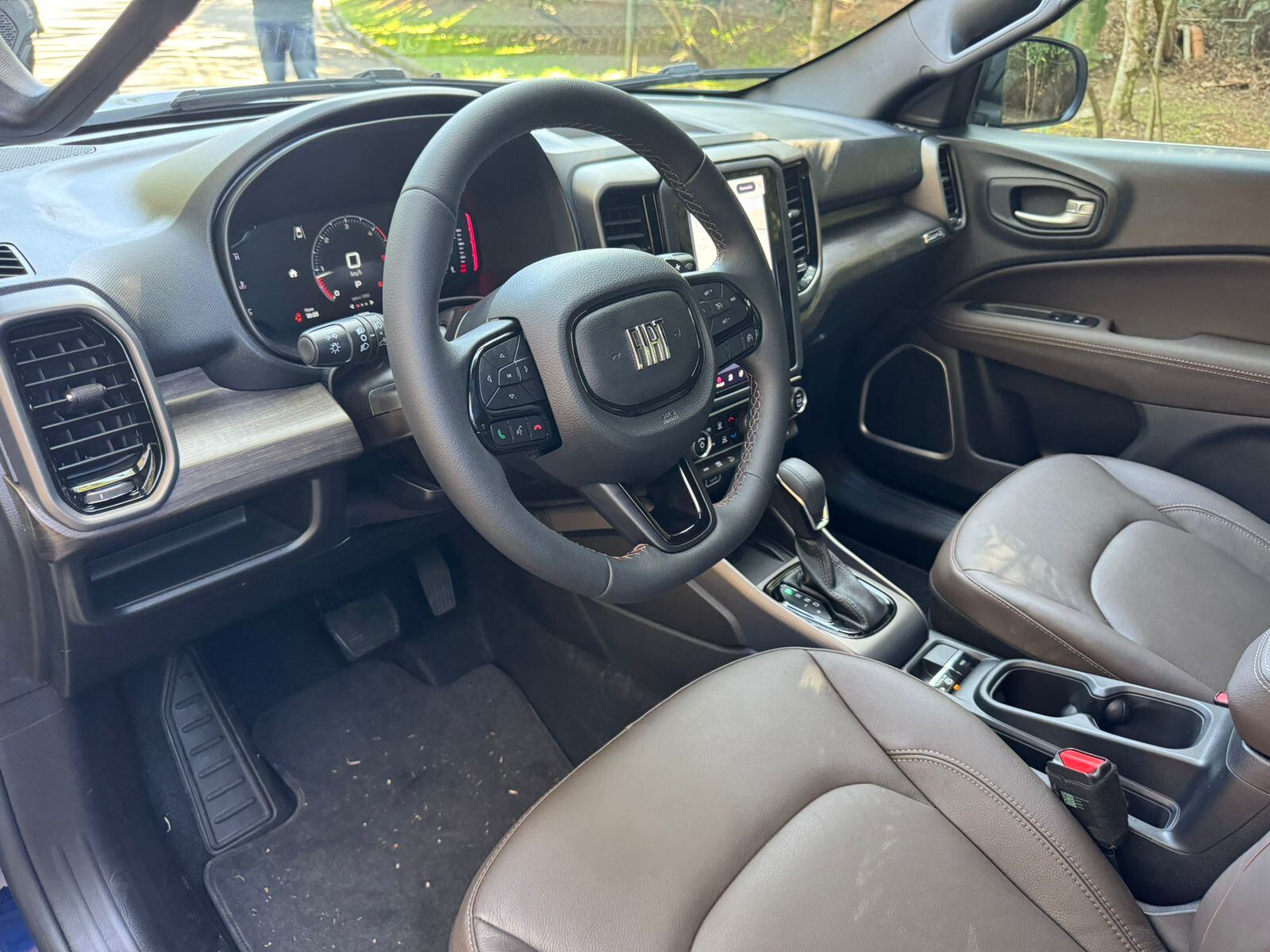 A Fiat Toro mantém sua estrutura interior já conhecida mas há novas molduras nas saídas de ar, nova manopla de câmbio que é mais fina e alguns detalhes internos.