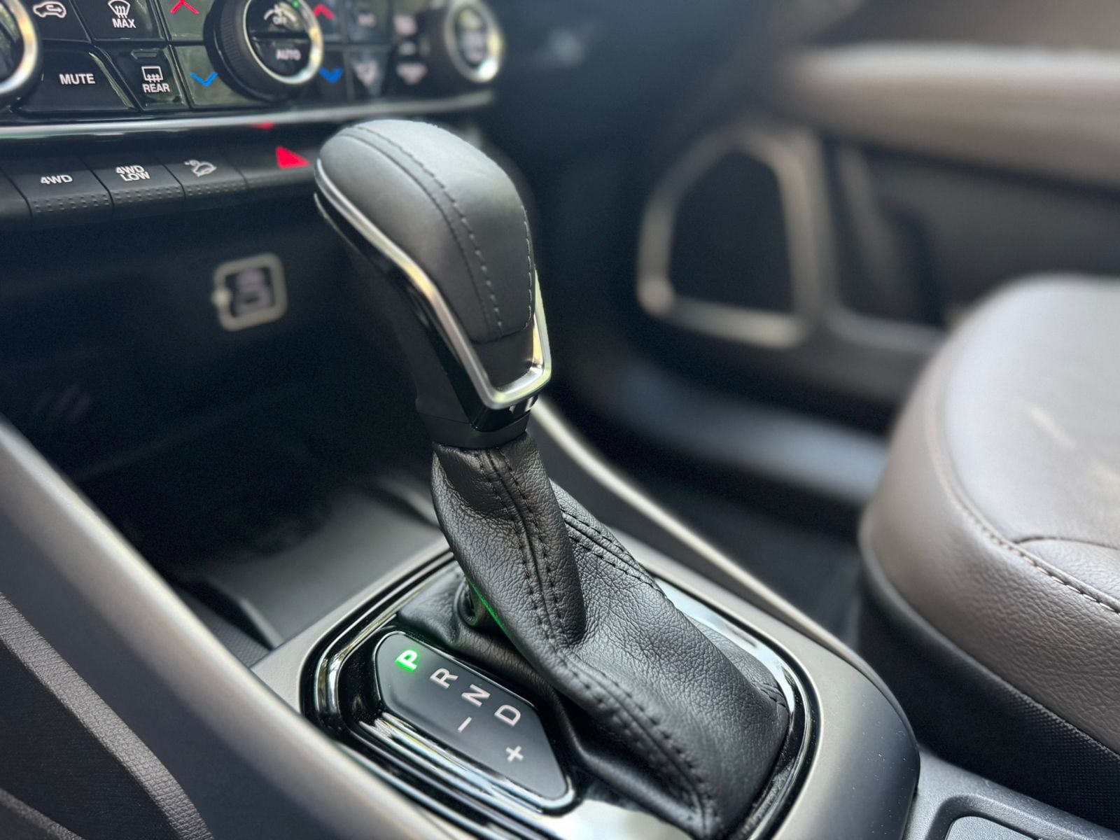 Um destaque é o freio eletrônico de estacionamento com função auto hold. O console central tem uma moldura marrom e novo espaço para a chave presencial além da nova alavanca do câmbio que é automático em todas as versões.