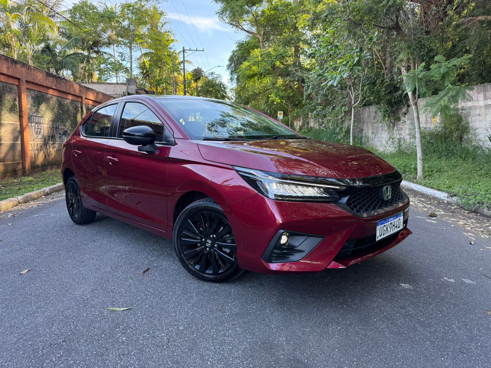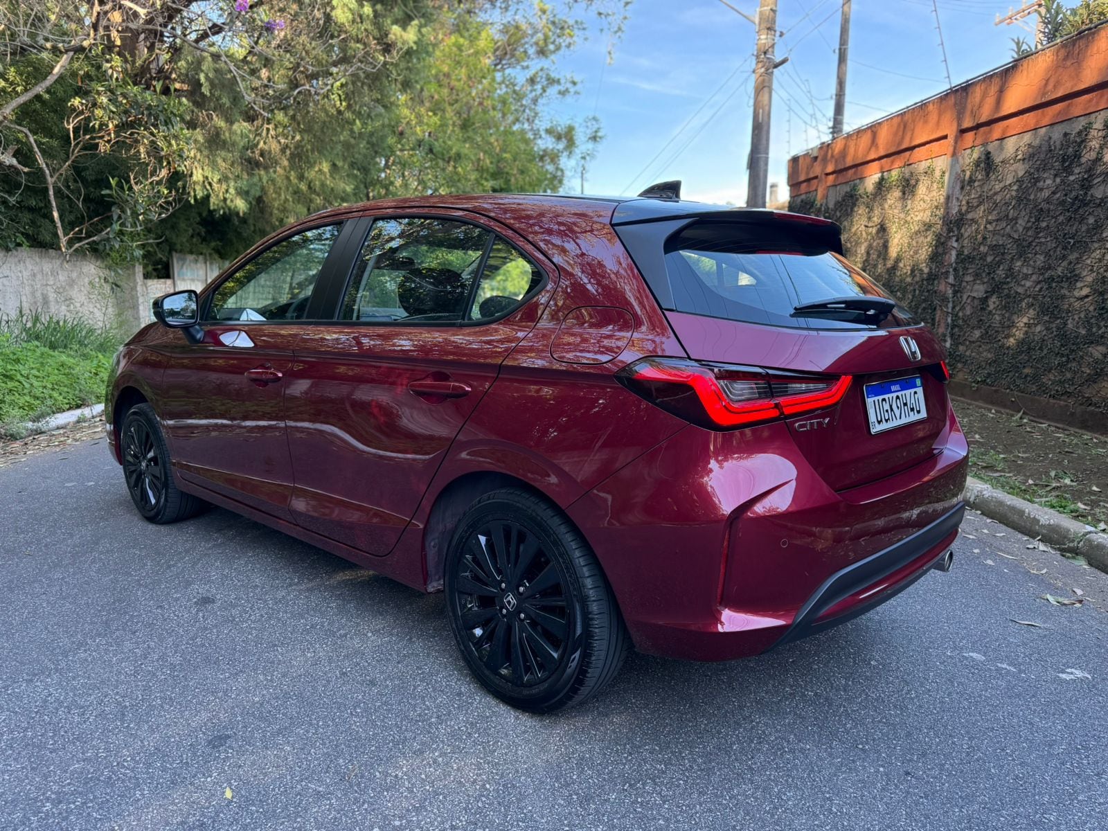 O City Hatchback Touring Sport será sempre oferecido na cor Vermelho Supernova e traz elementos externos em preto brilhante aplicados no teto, antena tipo tubarão, aerofólio, rodas e capas dos retrovisores.