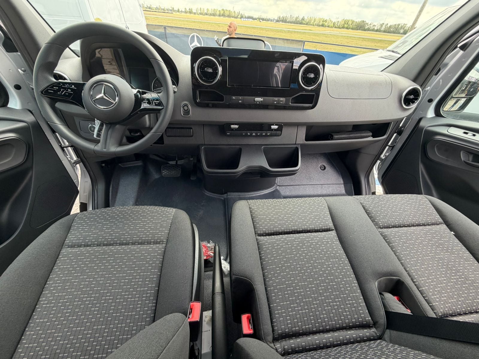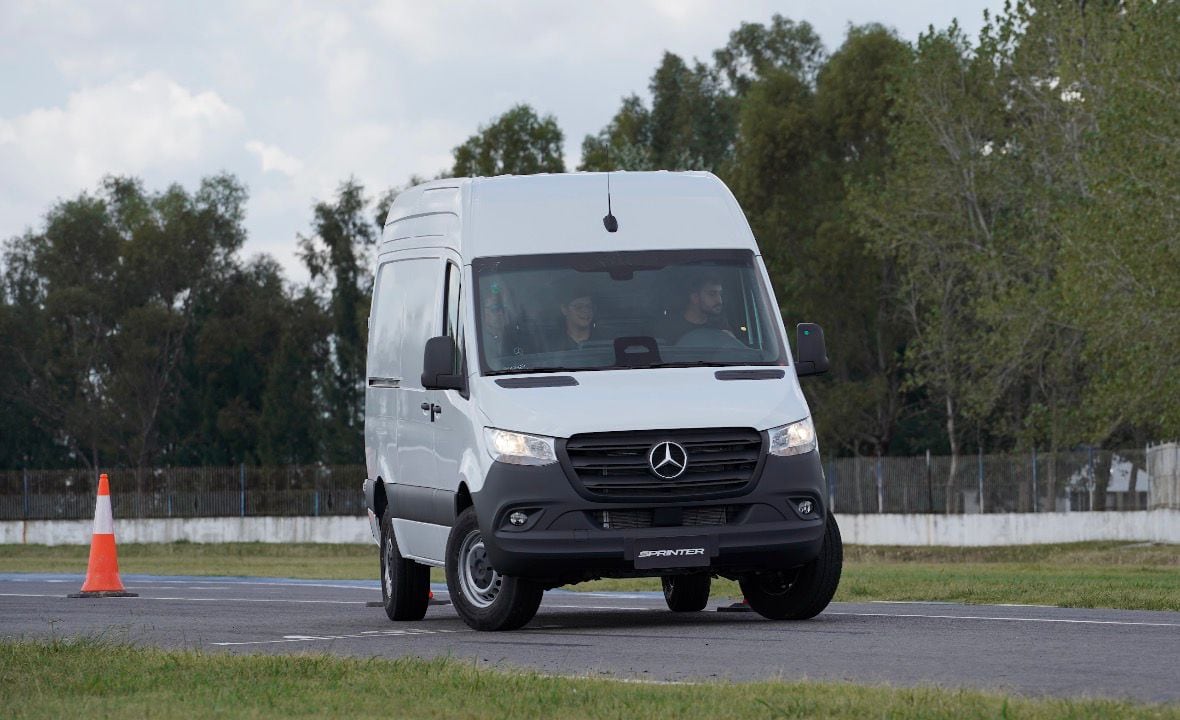 Aceleramos a van Argentina em sua terra natal, um autódromo particular na região de La Plata a 83km de Buenos Aires. O Câmbio automático só estará disponível as versões mais equipadas Sprinter independente da carroceria. Portanto, quem quiser compra-lo levará também itens ainda incomuns como partida por botão, multimídia com comando de voz e sistema MBUX, ar condicionado digital e sistema de alertas de condução.