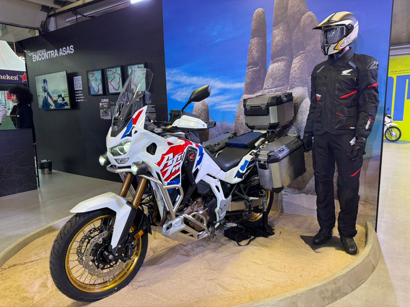 A Africa Twin também estreia com novidades. Mantém o elogiado motor de 1.084 cm³ com 99cv e 10kgfm de torque e segue disponível com opção de câmbio automatizado de dupla embreagem de DCT, suspensão eletrônica Showa EERA, HSTC (Honda Selectable Torque Control), controle de tração e painel TFT de 6,5 polegadas.