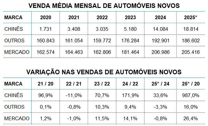 Falando em vendas, apenas como fato ilustrativo. Quando compararmos o atual volume com o que foi comercializado em 2020, nota-se que as vendas das marcas chinesas cresceram quase 1.000%, contra um mercado que registrou crescimento de 26%.