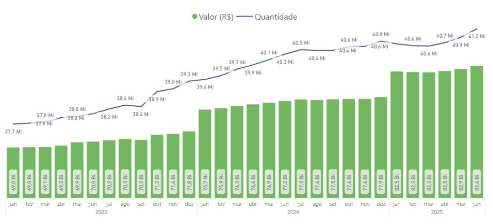É o maior valor para o primeiro semestre já registrado na série histórica, acima até de 2020, ano da pandemia de Covid-19.