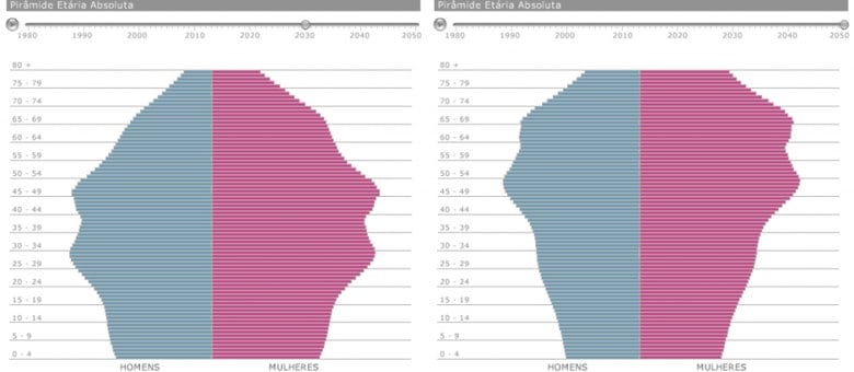 O vídeo abaixo demonstra esse processo de envelhecimento que está em curso e como a base da pirâmide está se invertendo rapidamente e o problema mais grave é DEMOGRÁFICO!