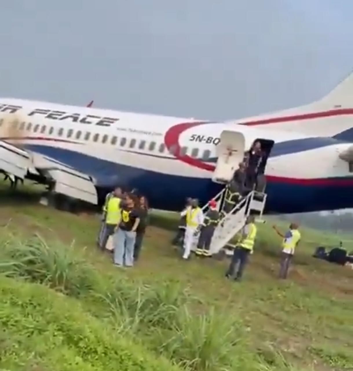 O porta-voz da companhia aérea, Osifo-whiskey Efe, disse em um comunicado que a aeronave saiu ligeiramente da pista sem causar danos.