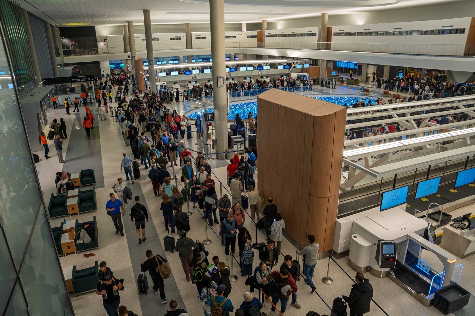 As filas de segurança nos aeroportos afetados estão aumentando de forma imprevisível a cada dia.