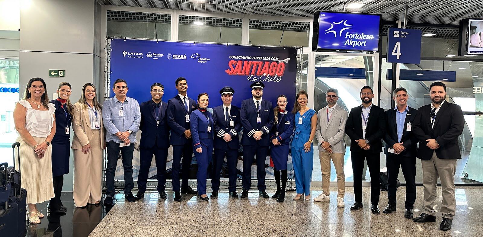 A LATAM inaugurou no último sábado (30/11) a rota Fortaleza-Santiago. Com 140 passageiros, o voo inaugural bateu a marca de 80% de ocupação e contou com cerimônia de corte de fita antes do embarque no Aeroporto de Fortaleza, com a presença de Yrwana Albuquerque (secretária de turismo do Ceará), Bruno Gaspar Marques (secretário executivo de planejamento e gestão interna do Ceará), Eduardo Macedo (gerente de assuntos públicos da LATAM Brasil) e Pedro Navega (gerente de aviação comercial da Fraport Brasil).