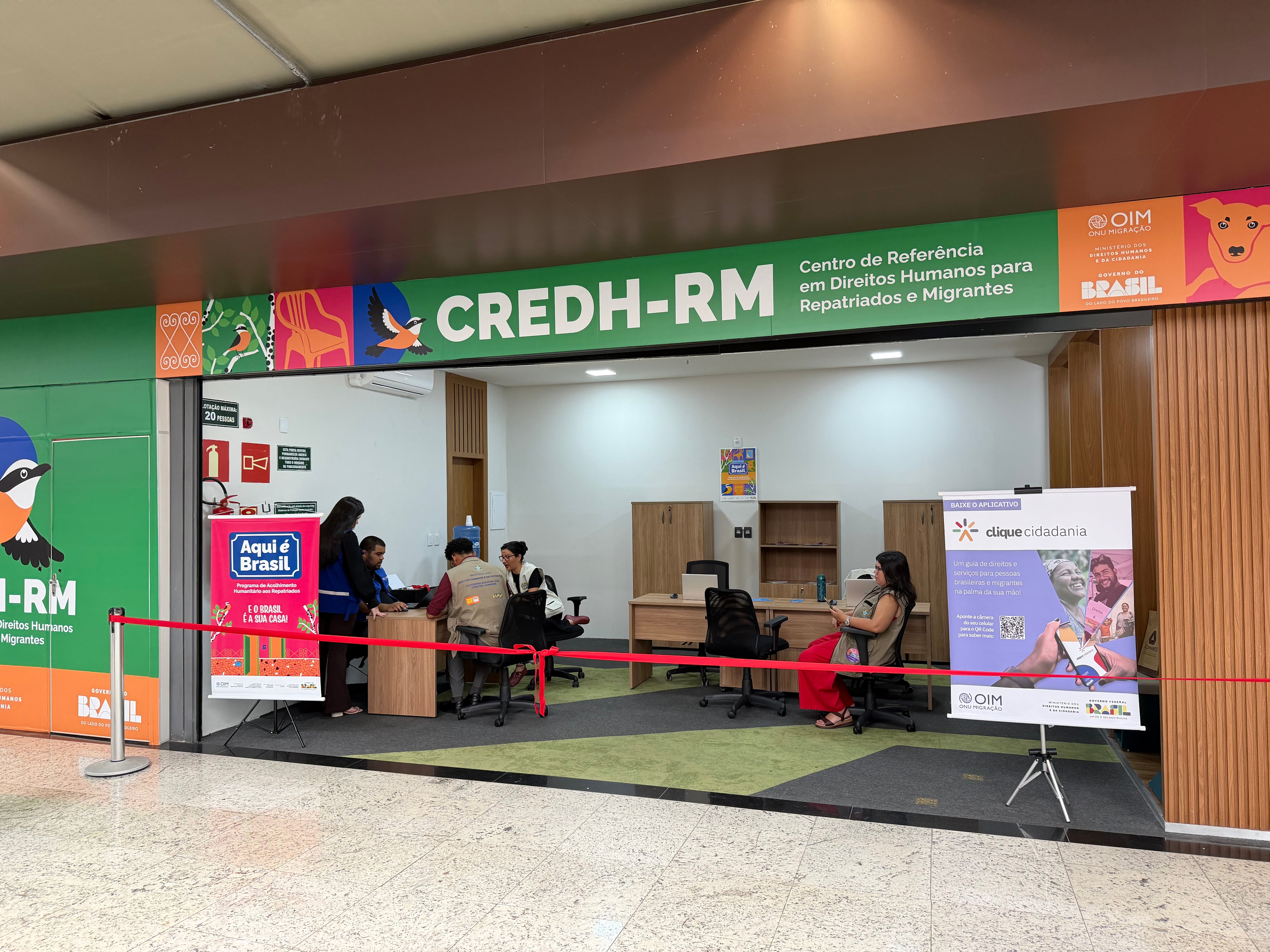 O BH Airport, o Ministério dos Direitos Humanos e da Cidadania (MDHC) e a Organização Internacional para as Migrações (OIM) inauguraram hoje o primeiro Centro de Referência em Direitos Humanos para Pessoas Repatriados e Migrantes (CREDH-RM) do Brasil, no 1º piso do Terminal de Passageiros 1. O equipamento inédito atua com atendimento presencial, humanizado e interdisciplinar, em horário comercial, e já tem projeto de ampliação aprovado, para garantir o acolhimento individual e personalizado para casos sensíveis.