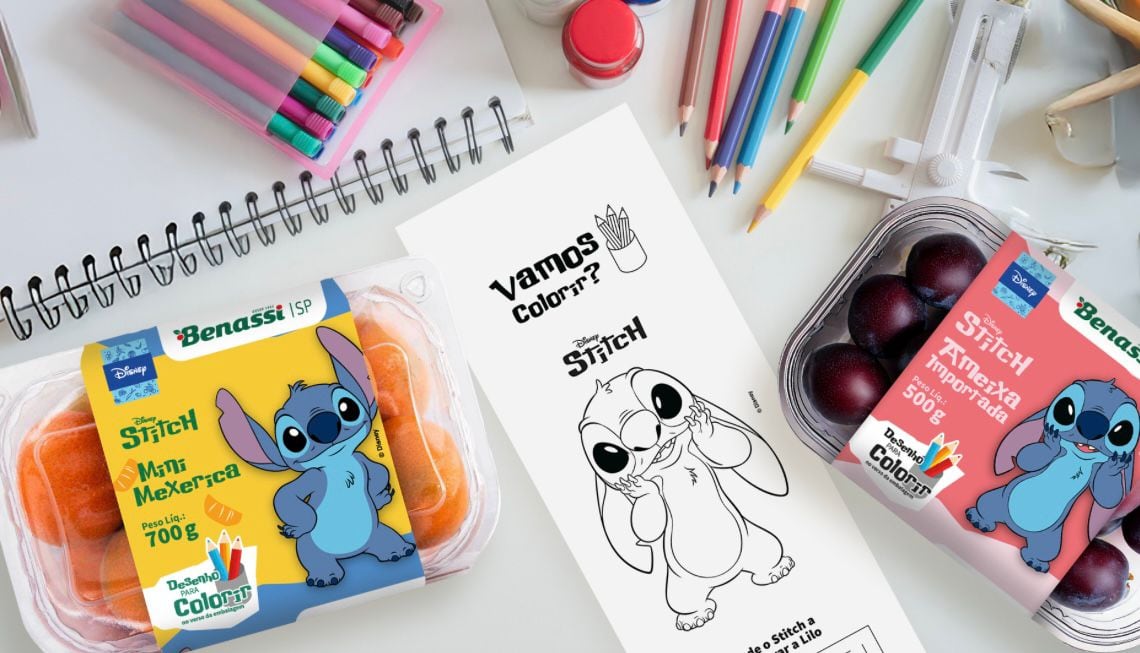 Em uma parceria inédita com a Disney, a Benassi SP — uma das principais distribuidoras de frutas no Brasil — acaba de lançar uma linha exclusiva de produtos hortifrúti com o personagem Stitch, da franquia “Lilo & Stitch”.
