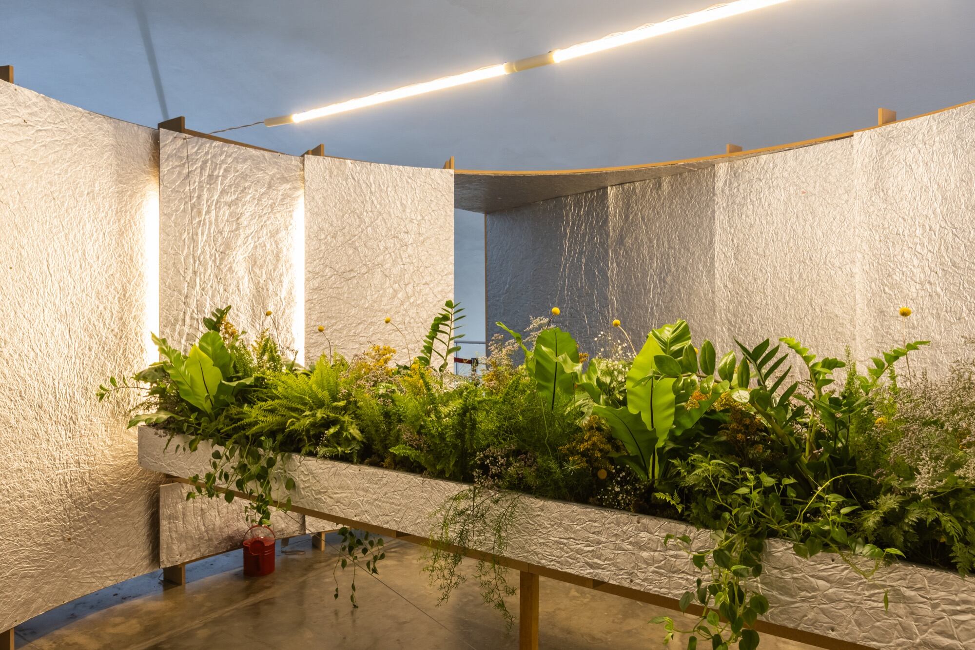 - Seção “Ficaremos Aqui”, com 14 construções experimentais de baixo impacto, algumas em tamanho real, que exploram materiais como plástico reciclado, solo-cimento, cânhamo e madeira, além de resgatar saberes tradicionais.