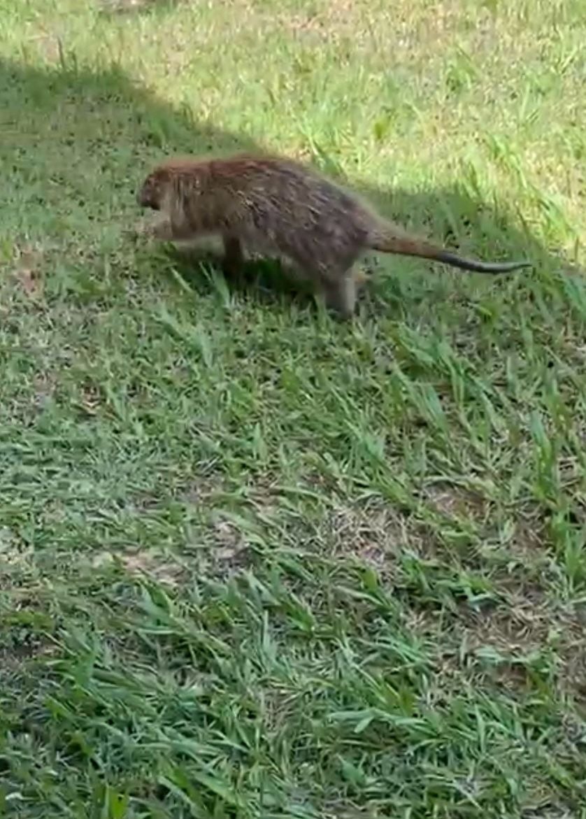 Ele não é um animal bonito. Mas é exótico, curioso, diferente. Eu não sinto medo — sinto fascínio. Porque cada aparição sua transforma o dia e desperta na família aquela alegria silenciosa de quem observa a natureza de perto.