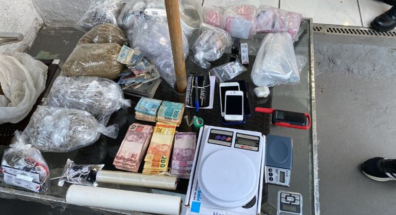 Durante o cumprimento de quatro mandados de busca e apreensão, as autoridades encontraram drogas, dinheiro, balança de precisão e rádios comunicadores usados no comércio de substâncias ilícitas. Um veículo, fruto de estelionato e empregado no transporte interestadual de drogas, também foi localizado.