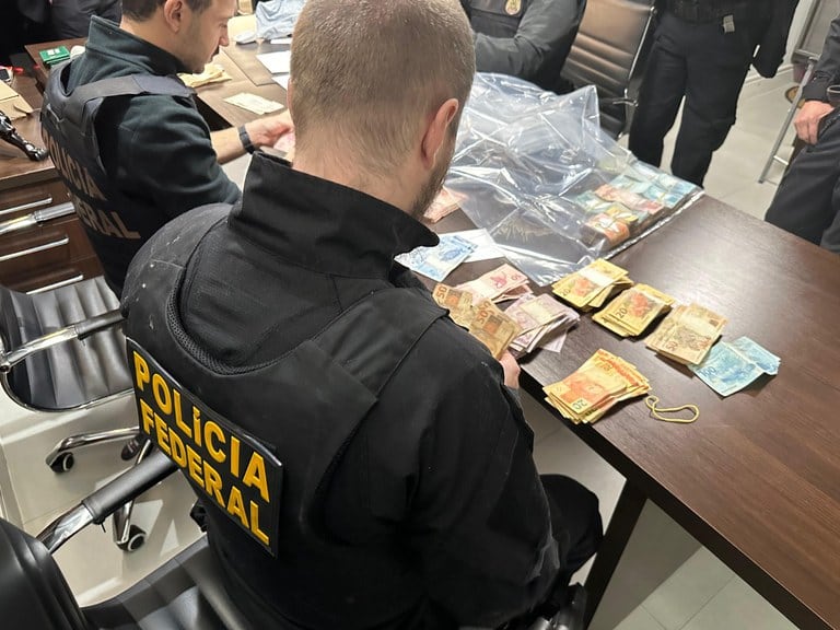 A Polícia Federal apreendeu nesta quarta-feira (25) na casa e no escritório do advogado Anderson dos Santos Domingues R$ 64 mil e US$ 25 mil em espécie. O advogado é suspeito de intermediar o pagamento de propina para policiais civis de São Paulo em troca de informações privilegiadas sobre investigações em andamento.