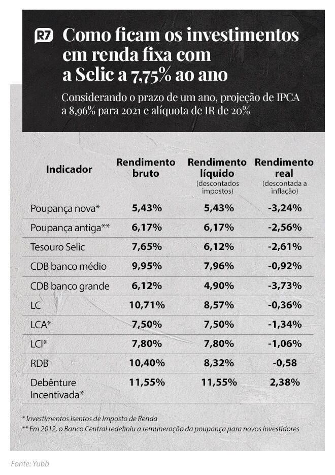 Quanto rende investir na renda fixa com a Selic a 7,75% ao ano?