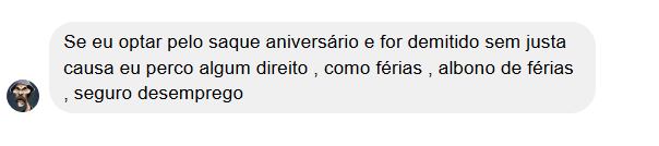 "Se eu optar pelo saque-aniversário e for demitido sem justa causa, eu perco algum direito como férias, abono de férias, seguro-desemprego?"