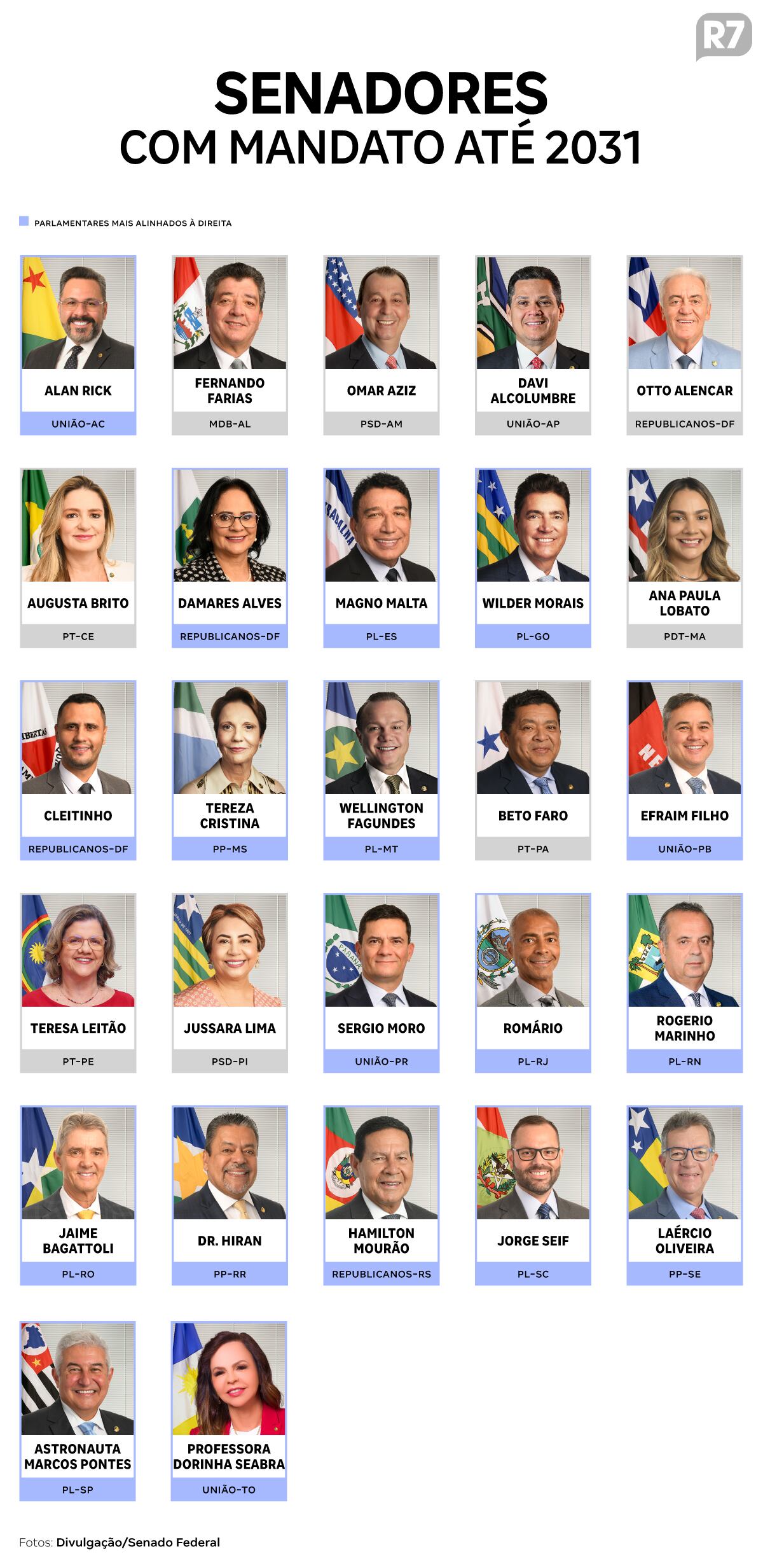 Ocorre que, no próximo ano, 27 senadores não vão participar do pleito, pois ainda terão mais quatro anos de mandato. Desse montante, a maioria — ao menos 18 — já se posiciona de acordo com as pautas da direita. Ao menos seis nomes são filiados ao PL, do ex-presidente Jair Bolsonaro, e cinco ao União Brasil.