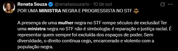 A mobilização ganhou força no X (antigo Twitter), onde hashtags como #STFDiverso, voltaram a circular. Usuários também sugeriram nomes de juristas negras para o cargo. Ainda assim, o movimento tem enfrentado dificuldade para manter o engajamento nas redes.