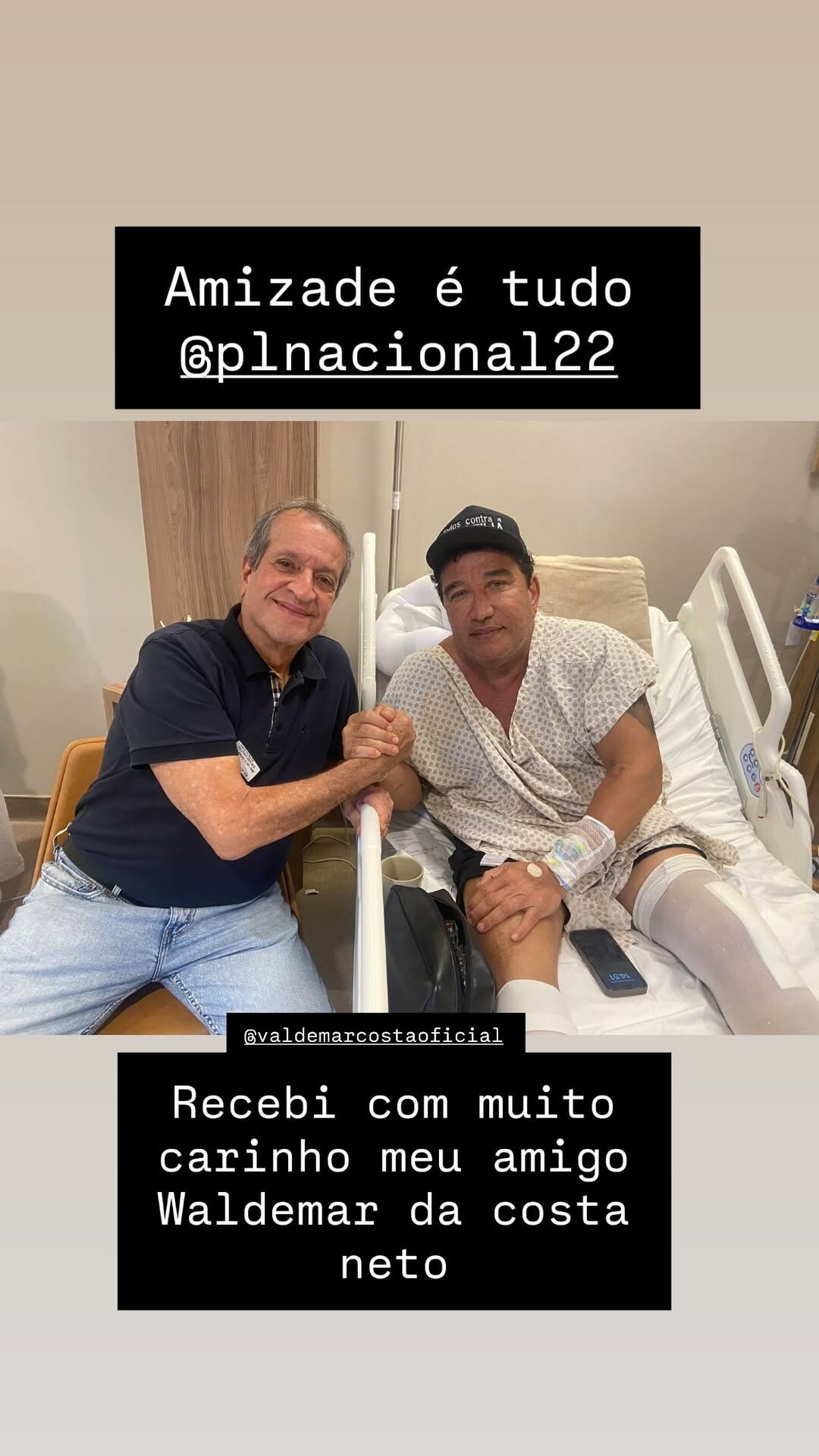 O senador Magno Malta (PL-ES) está internado em São Paulo após passar por uma cirurgia no joelho esquerdo. Mesmo em recuperação, o parlamentar recebeu na noite de sexta-feira (24) a visita do presidente do PL, Valdemar Costa Neto.