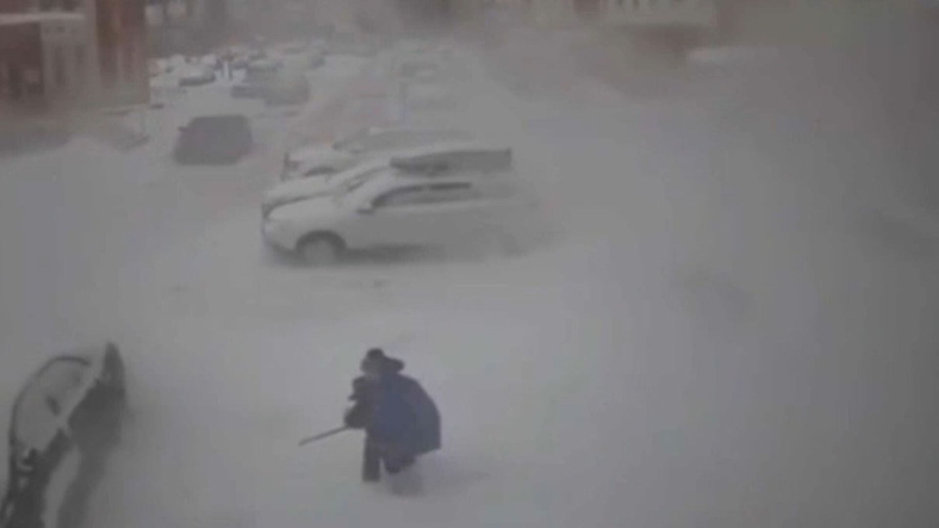 Avó e neto escapam por um triz de queda de neve na Rússia