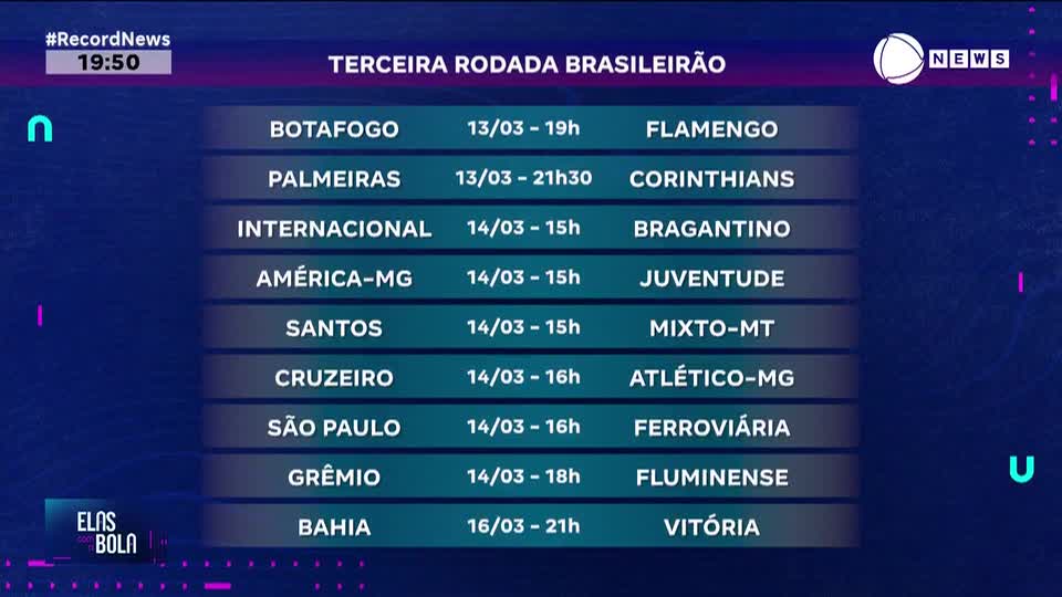 O programa Elas com a Bola vai ao ar de segunda a sexta-feira, às 19h45, na RECORD NEWS.