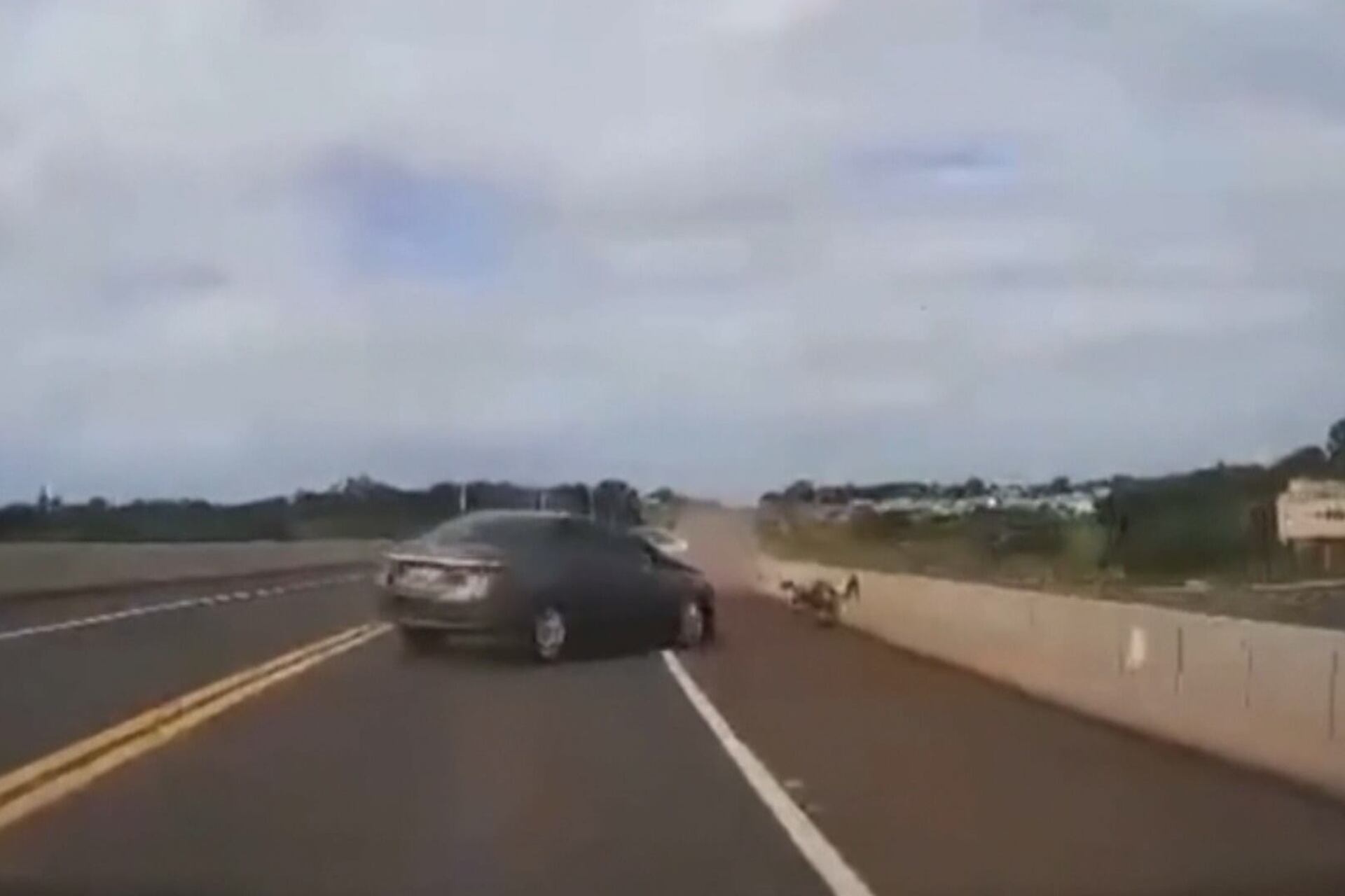 Câmera registra batida entre três carros em rodovia em Foz do Iguaçu (PR)
