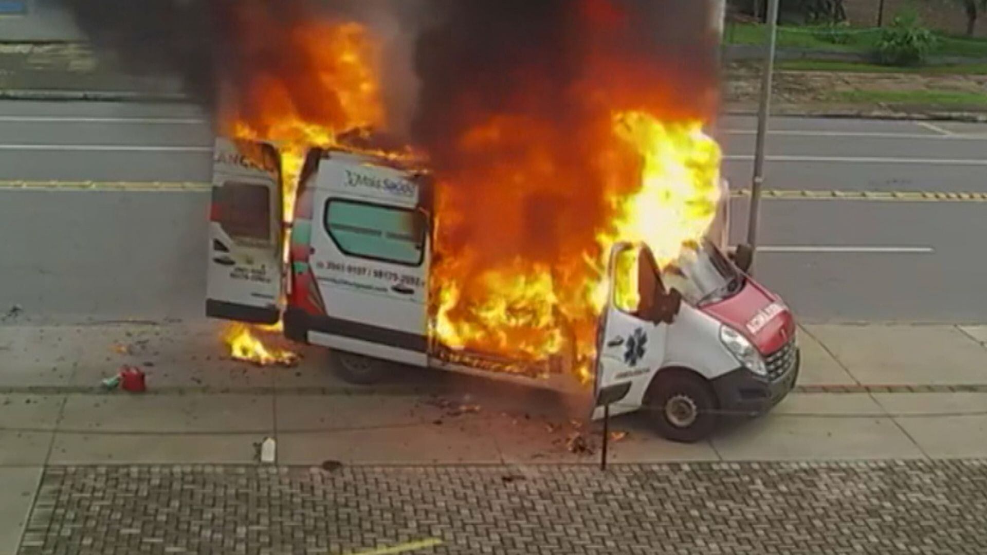 Ambulância pega fogo e criança precisa ser retirada às pressas em GO