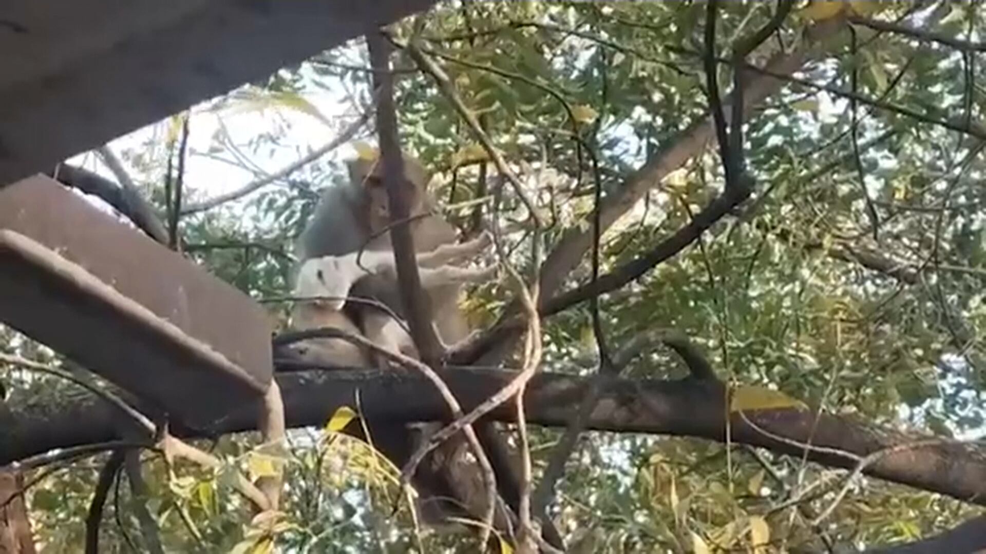 Macaco ‘sequestra’ cabrito e o mantém 'refém' no topo de árvore por uma hora