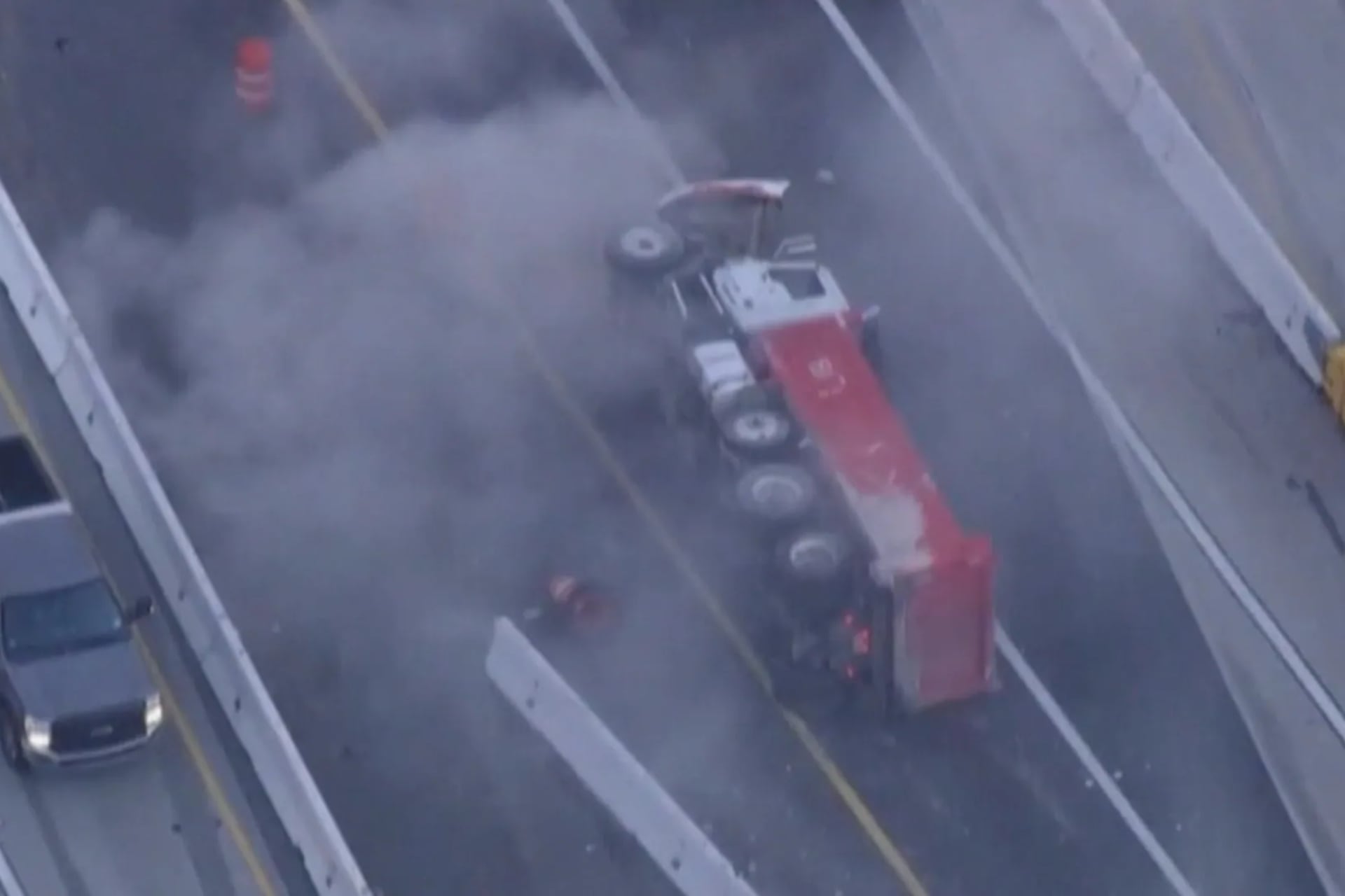 Caminhão invade obra e tomba durante fuga da polícia nos Estados Unidos