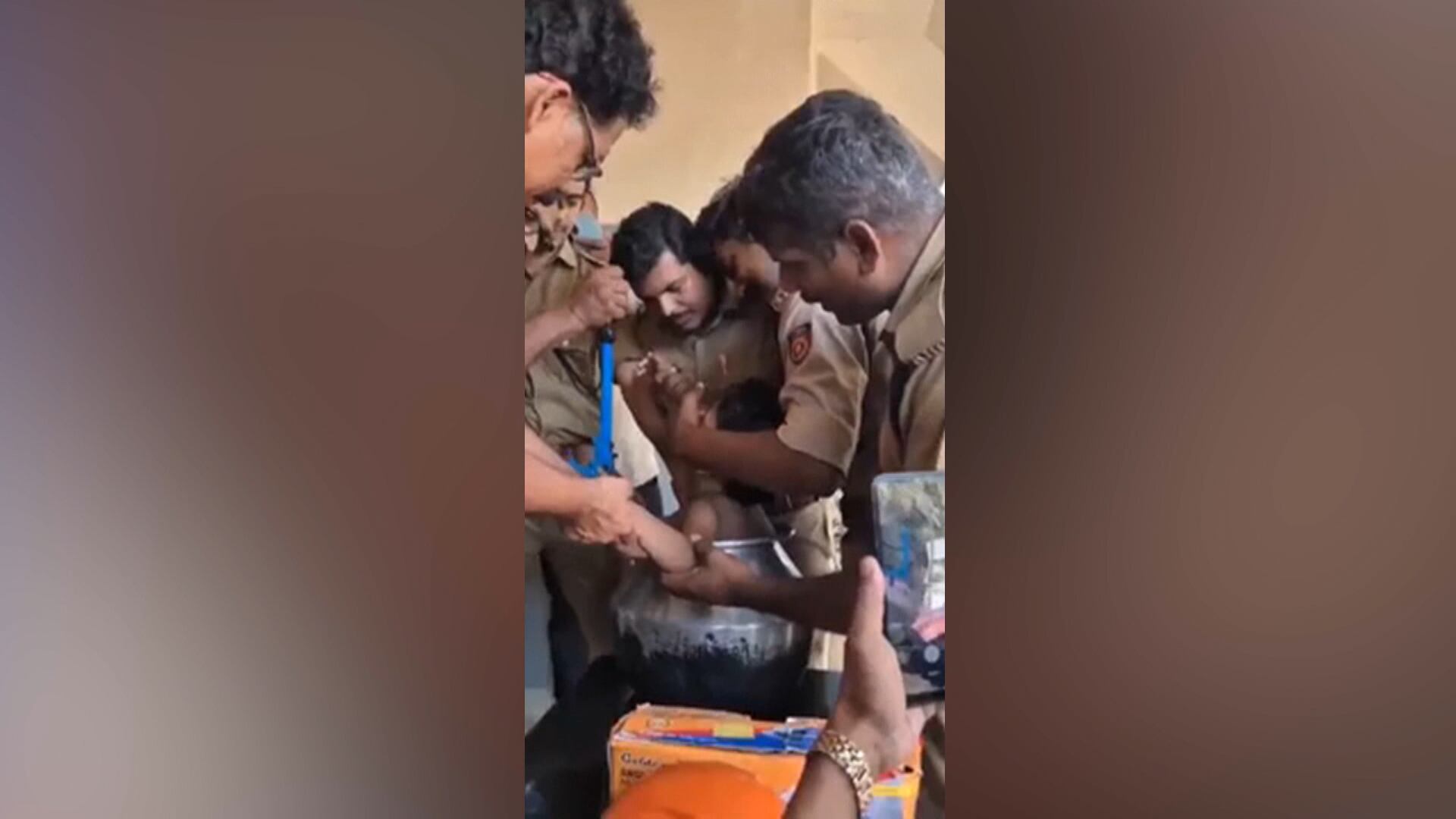 Menino entra em panela durante brincadeira e acaba ficando preso