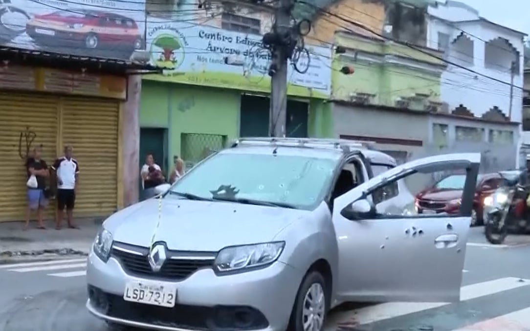Homens em duas motocicletas bloquearam a passagem na via enquanto criminosos fizeram diversos disparos contra um automóvel.
