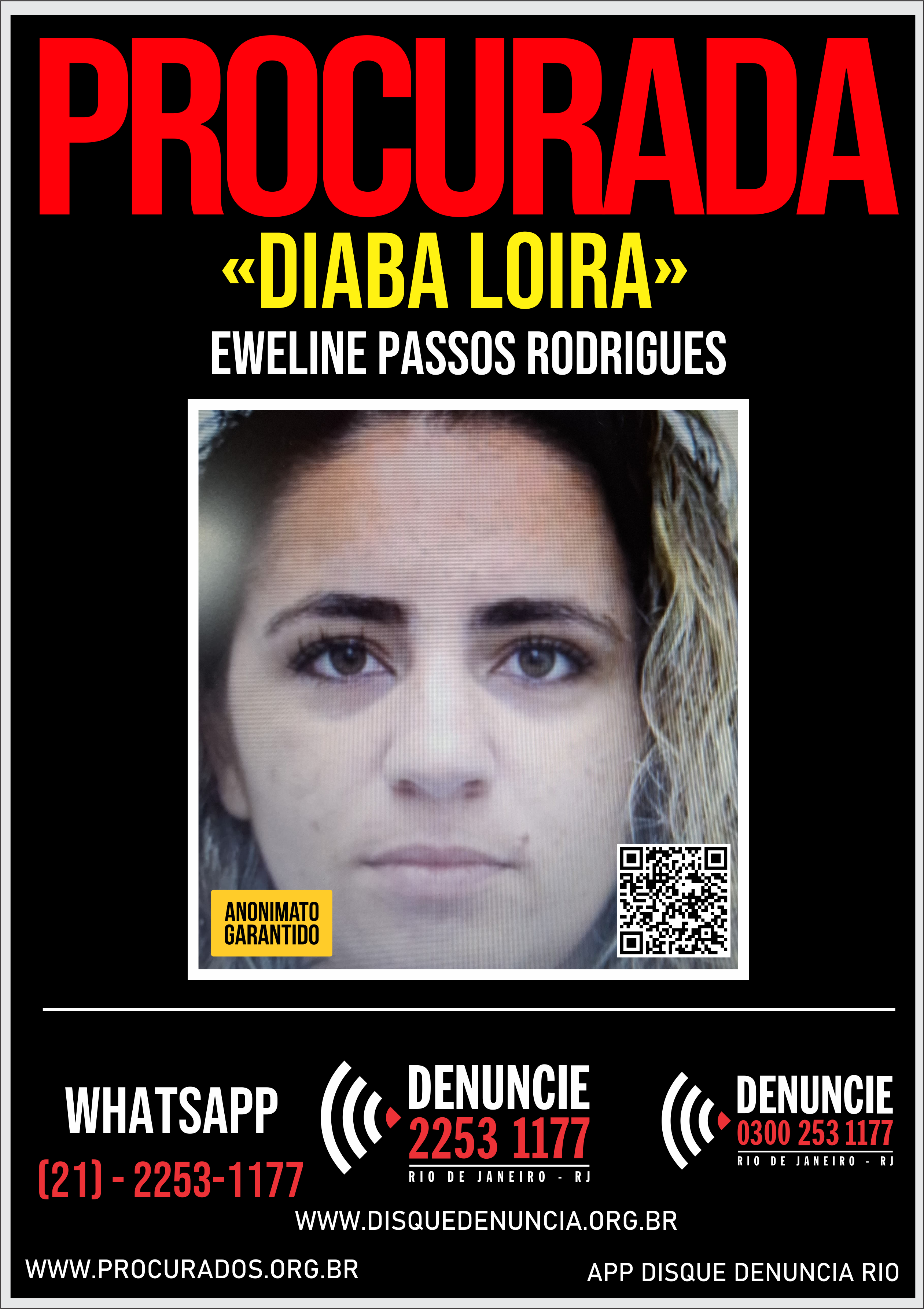 Alvo de mandados de prisão expedidos pela Justiça de Rio e Santa Catarina, a Diaba Loira era procurada pela polícia. O Disque Denúncia chegou a divulgar um cartaz com a foto dela.