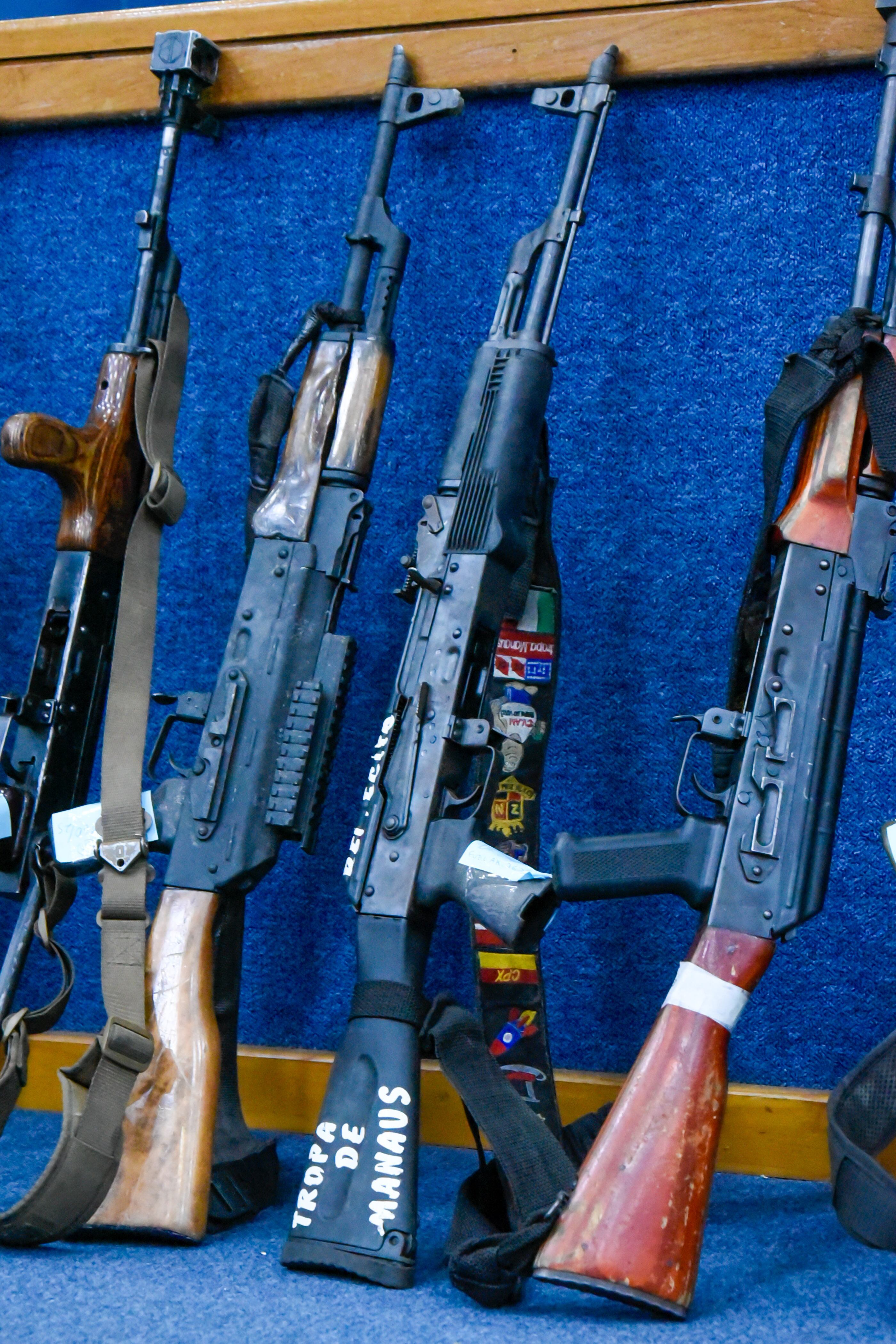 O delegado Vinicius Domingos, coordenador da CFAE (Coordenadoria de Fiscalização em Armas e Explosivos), afirmou que dois fuzis são de instituição militar venezuelana. Além deles, foram achados um da Argentina e outro do Peru.