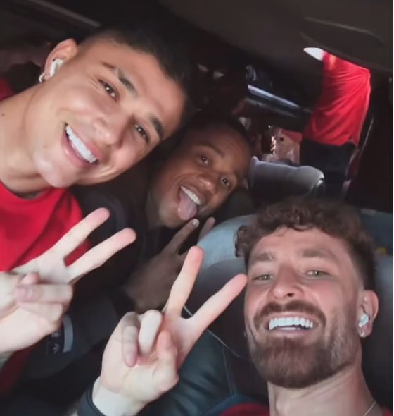 Os atletas estão a caminho de Lima, no Peru, para disputar a Libertadores contra o Palmeiras, no próximo sábado (29).