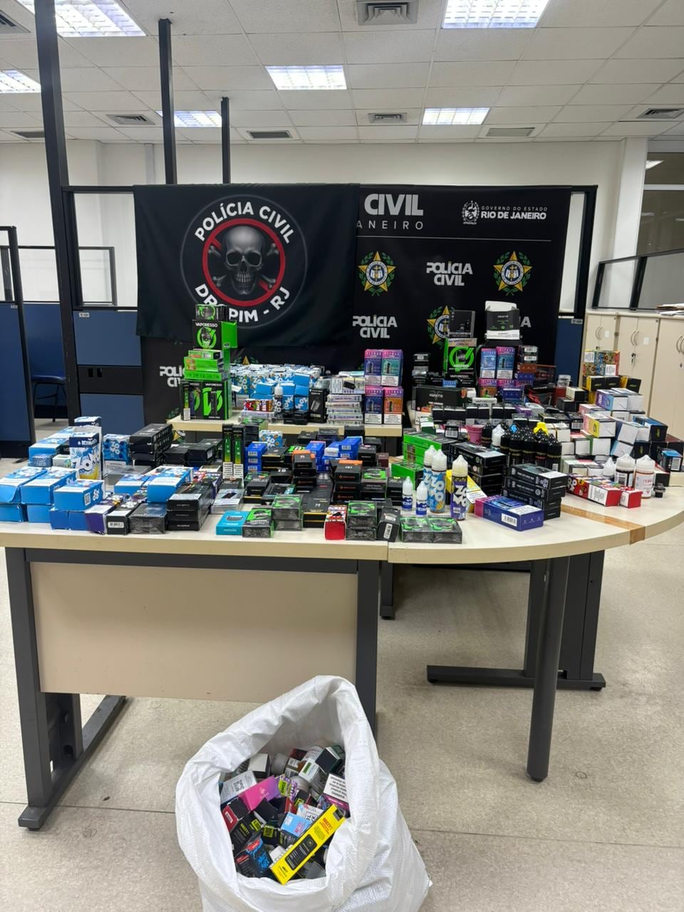 Policiais civis prenderam, nesta sexta-feira (30), os dois maiores distribuidores de cigarros eletrônicos da zona sul do Rio e da Tijuca, na zona norte. Na ação, mais de mil itens ilegais foram apreendidos.