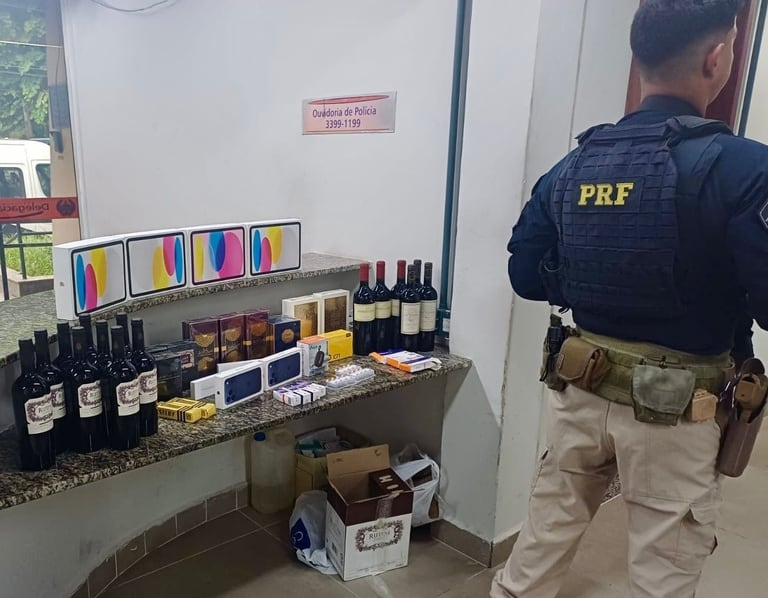 Também foram encontrados 15 garrafas de vinhos, quatro tablets, dois celulares, e 11 perfumes importados, sem comprovação fiscal. O valor total dos produtos é superior a R$ 40 mil.