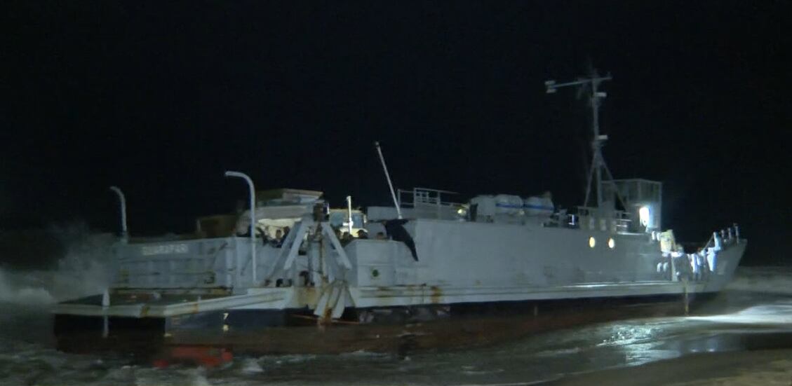 Navio da Marinha faz manobra controlada e encosta na Praia do Recreio, zona sudoeste do Rio