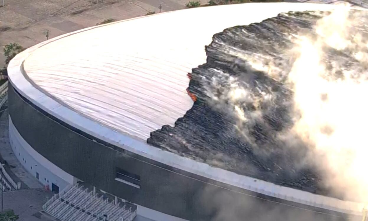 O fogo destruiu a cobertura do Velódromo durante a madrugada desta quarta-feira (8)