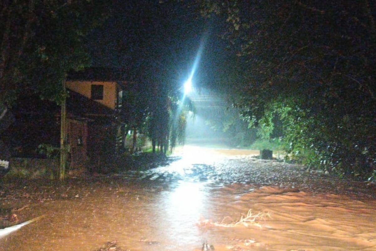 Com a chuva intensa que atingiu o Balneário de Pratas, em São Carlos, no Oeste de Santa Catarina, algumas ruas foram bloqueios e casas atingidas na noite de quinta-feira (10). As informações são da Defesa Civil.