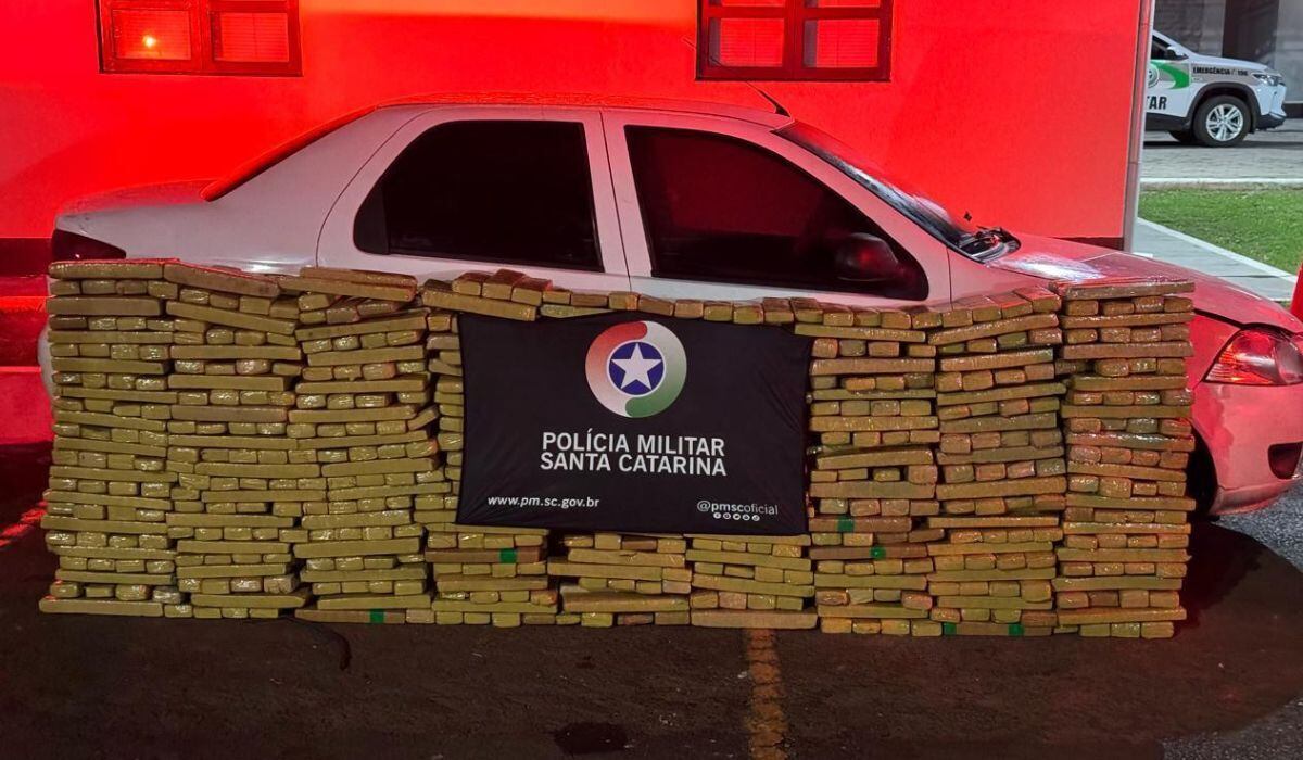 Dois homens de 19 anos que transportavam 640 kg de maconha foram presos pela Polícia Militar em Curitibanos, no Meio-Oeste de Santa Catarina, na madrugada deste domingo (18). A dupla estava em um veículo adulterado e também possuía munição irregular.
