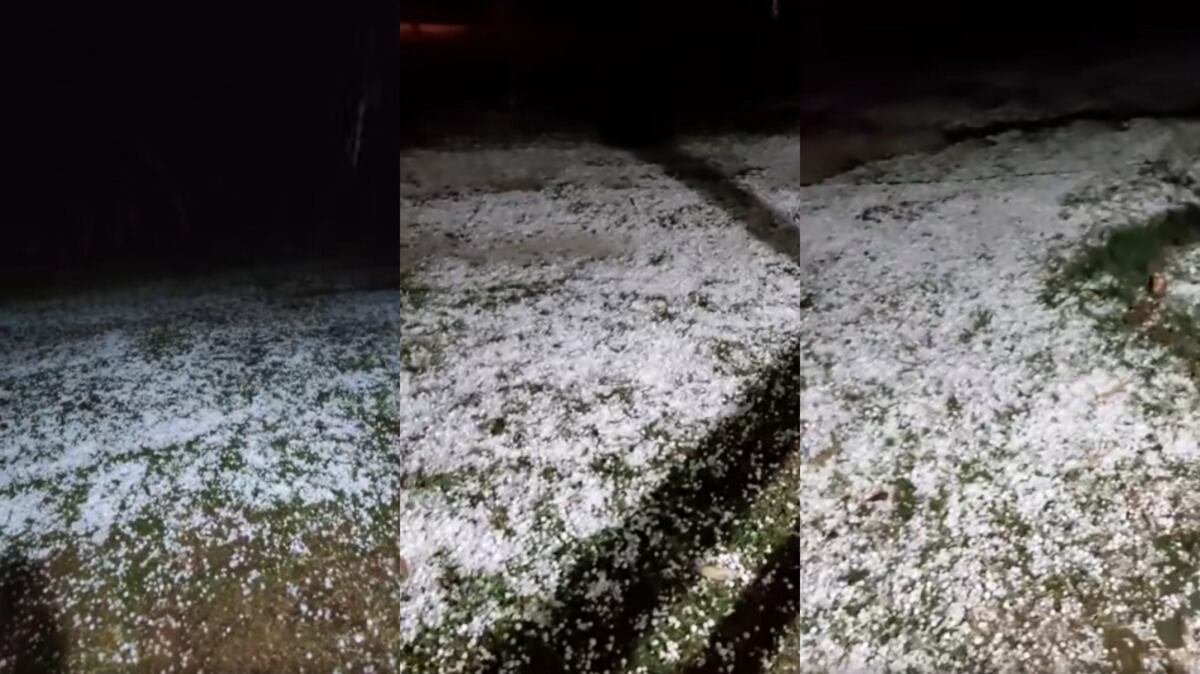 Uma forte chuva de granizo atingiu a zona rural do município de Zortéa, no Meio-Oeste de Santa Catarina, na noite de sábado (26). Imagens feitas por moradores mostram as pedras de gelo cobrindo toda a grama e deixando o chão branco.